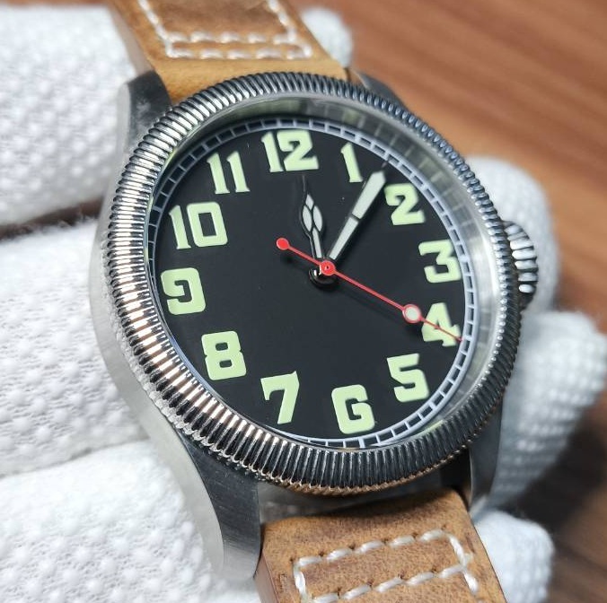 カーキ NO LOGO オマージュウォッチ レザー 自動巻き 機械式 SEIKO NH35 パイロット ミリタリー ベンラス ナバル WMT MWC marathon