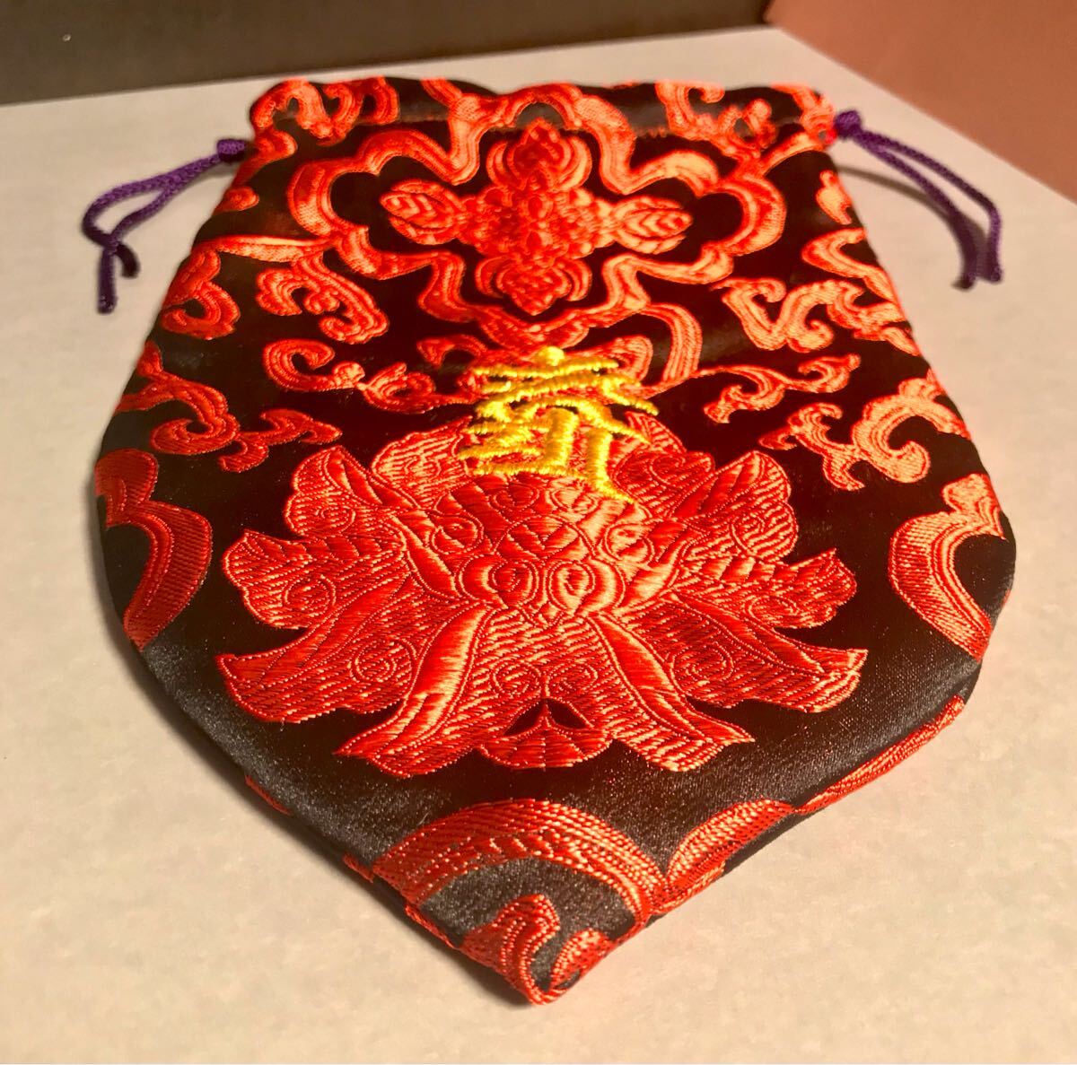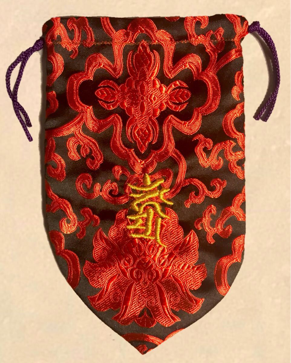 さりげなくかわいい、蓮の花弁の形をした数珠入れです。おもては不動明王さまの梵字、うらは密かに慈救咒を、不動明王のご真言(慈救咒)を唱えながら、心を込めて刺繍しました。不動明王さまは美しい炎で、心の迷いや煩悩を解き放ってくれます。また強い剣の力で災難から護ってくれます。数珠のみならず、御守りを纏めて入れたり、守りたい宝物を入れたり、小物入れやスマートフォンケースとしてもおすすめです。大きさは22.5cmぐらい、横13.5cmぐらいです。新品ですが、それぞれ一点物のオリジナル手づくり商品ですので、細かい状態に関してはご了承下さい。御入金確認後、1-2日で発送します。お支払いは ★ヤフーかんたん決済 でお願い致します。ご入金は、オークション終了後、3日以内にお願い致します。