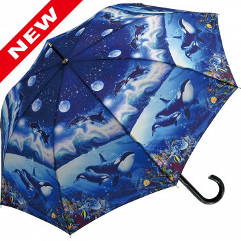 | ラッセンのアートをダイナミックに使用したスタイリッシュなジャンプ傘!傘を広げれば、水面を見上げたような神秘的な世界が広がります。 |
