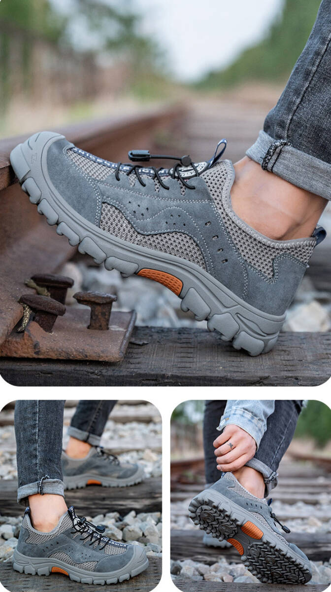 【通気性抜群】安全ブーツのアッパーは通気の編み物を採用する、通気性が抜群です。それに空気循環する特殊構造で、靴内の足ムレを軽減し快適です。履き心がいいです。