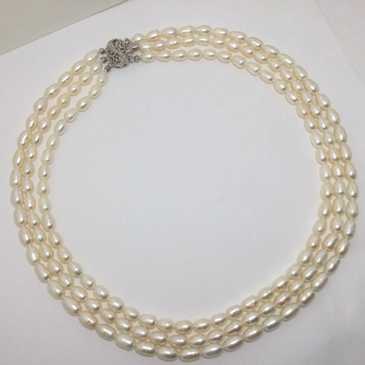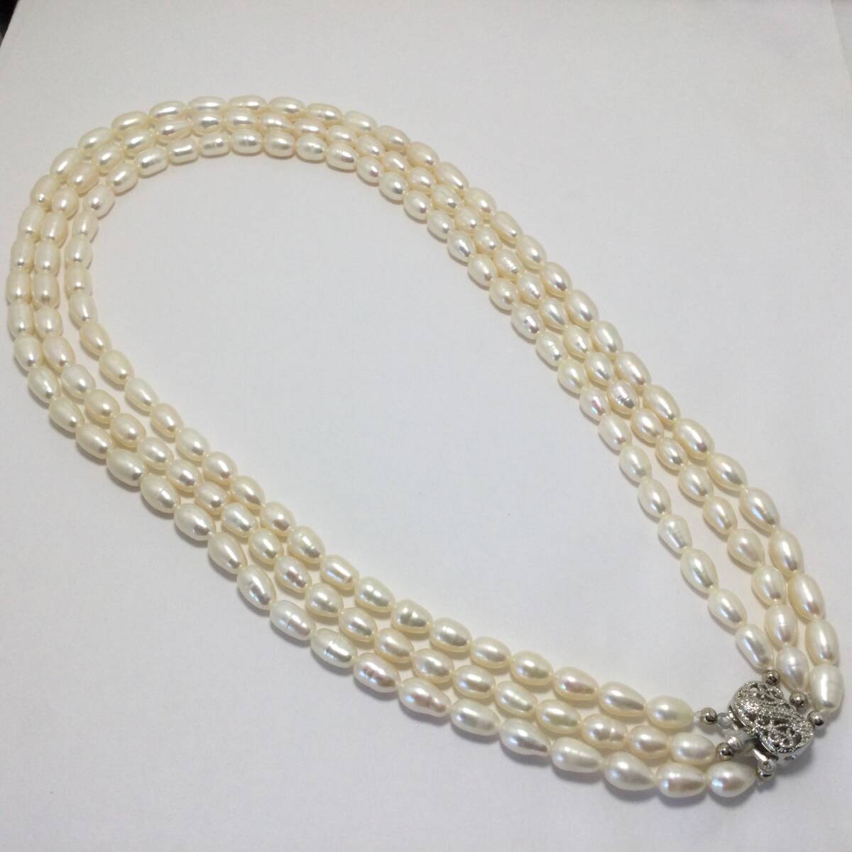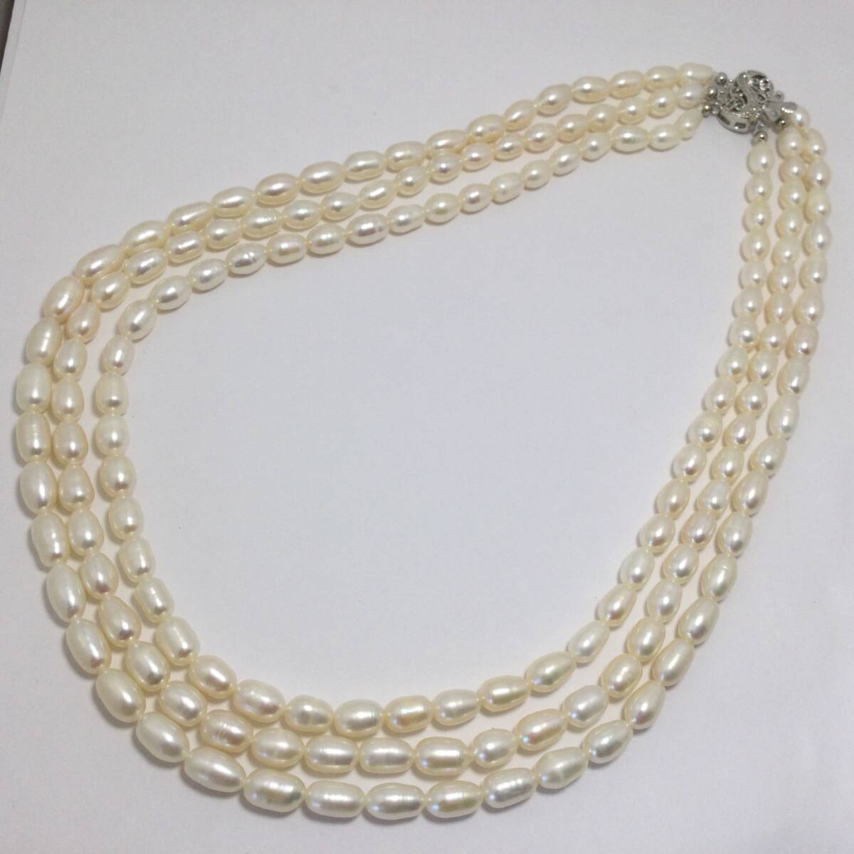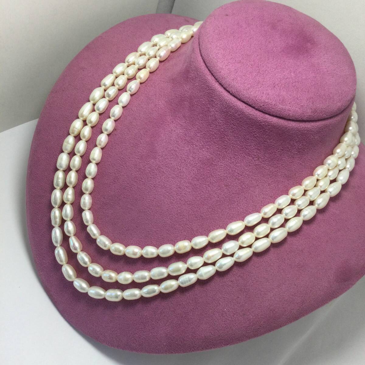 最新モデル真珠淡水パールライス形3連ネックレス・冠婚葬祭フォマールの定番・和服に洋服にも似合う
