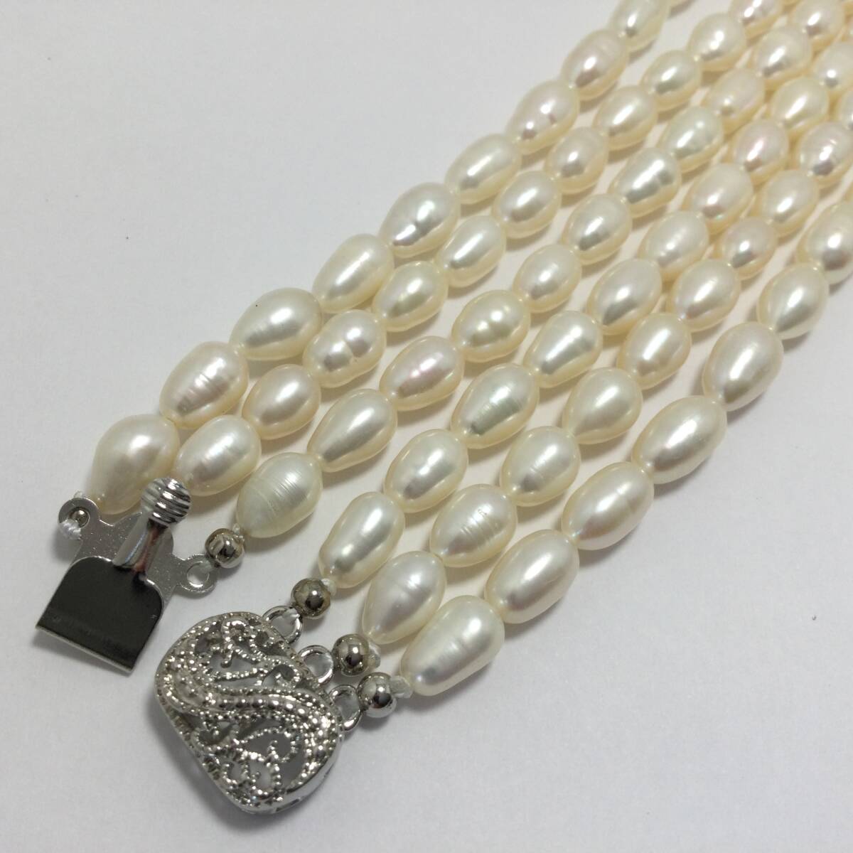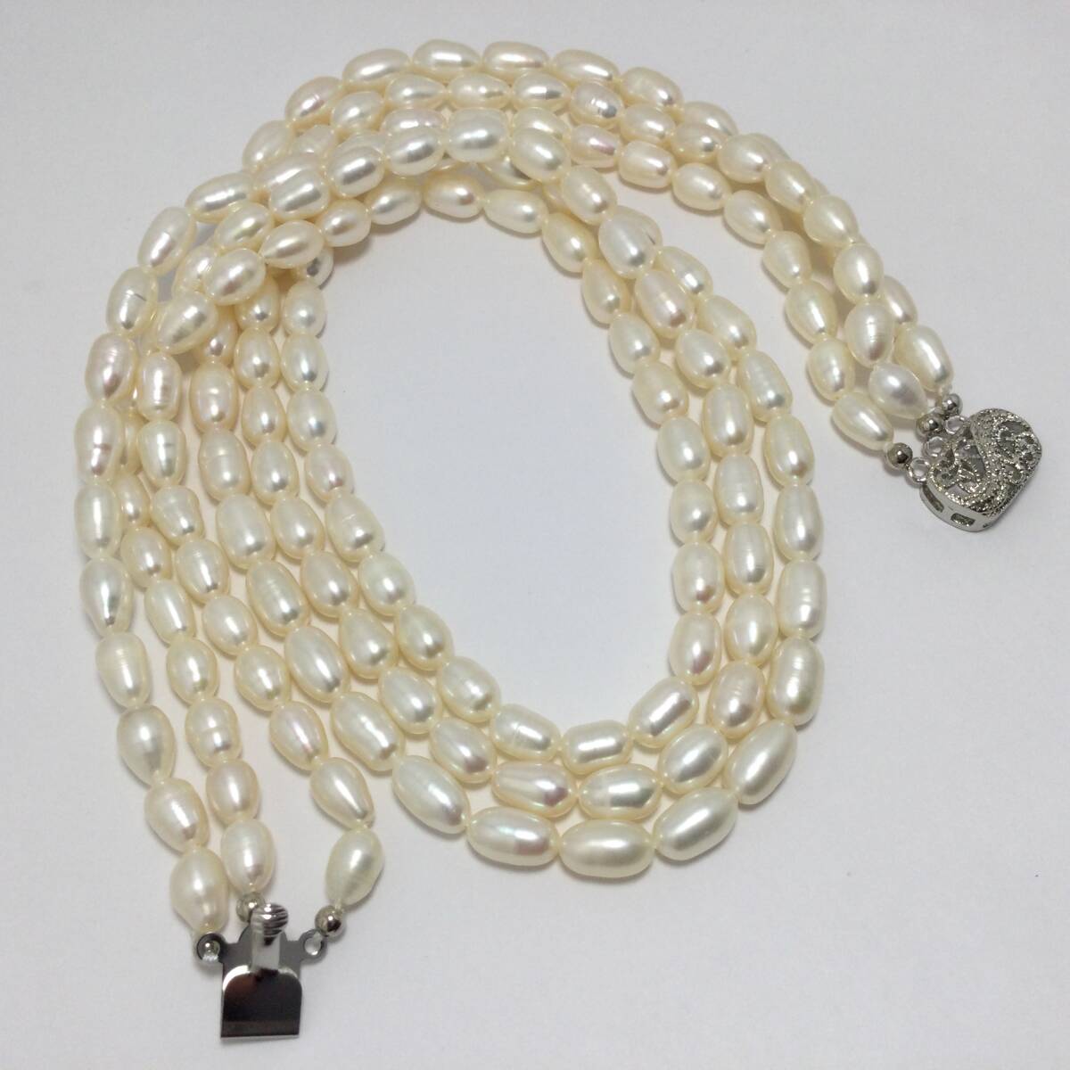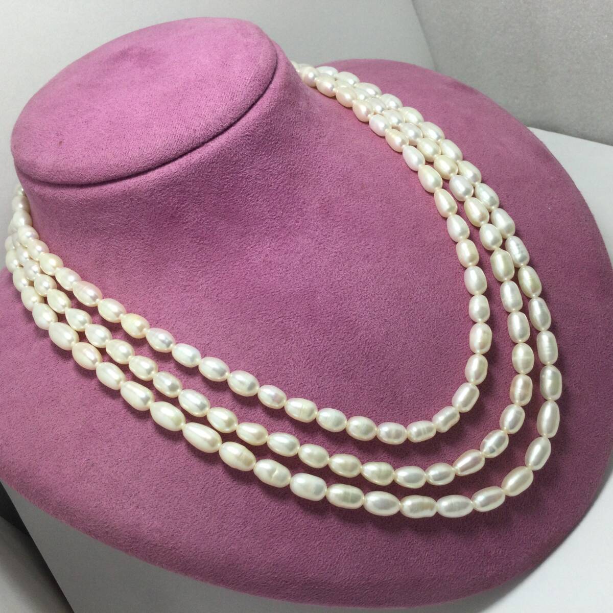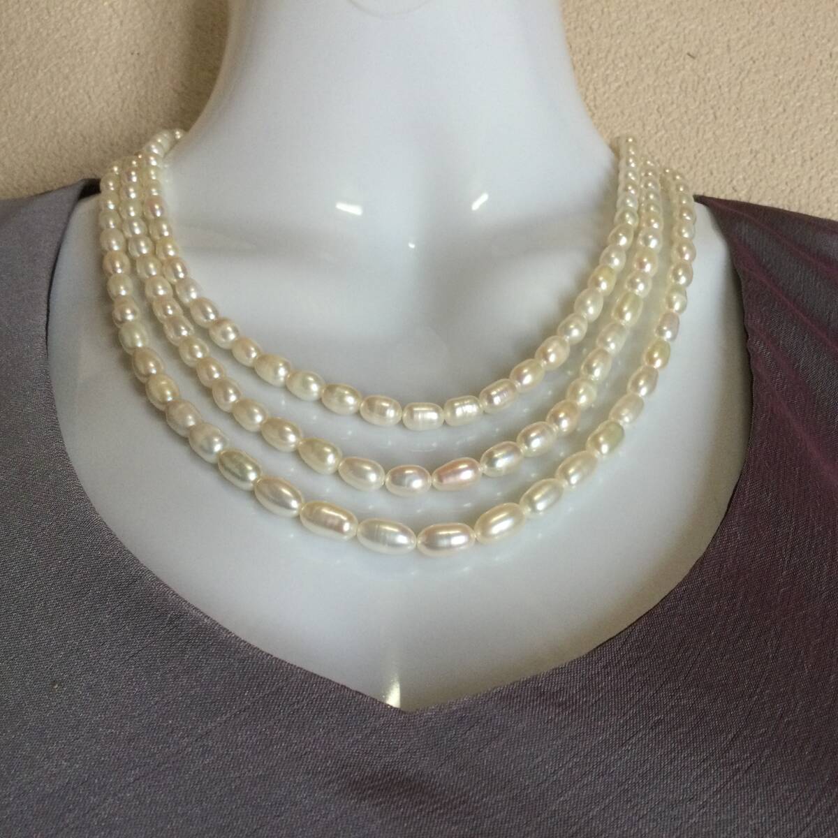最新モデル真珠淡水パールライス形3連ネックレス・冠婚葬祭フォマールの定番・和服に洋服にも似合う