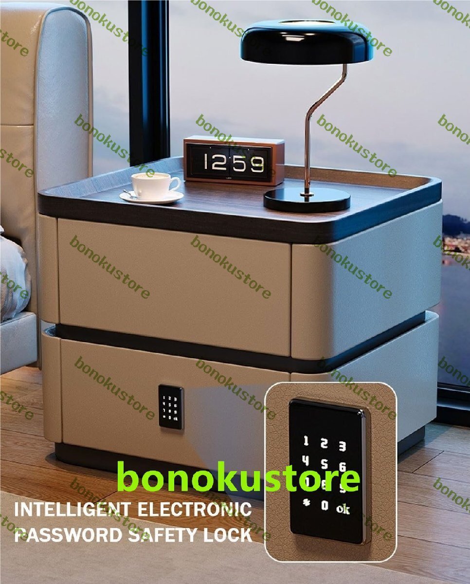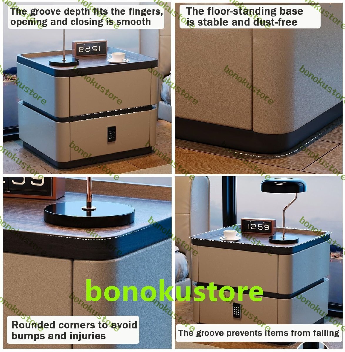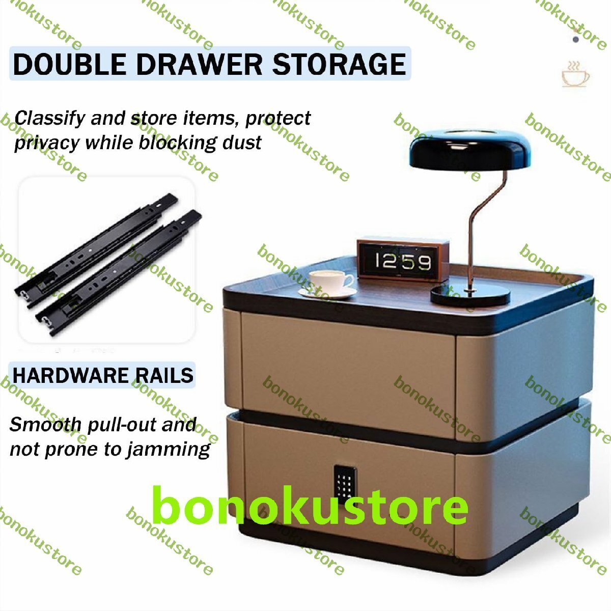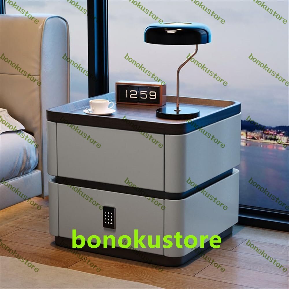 パスワード安全ロック付きスマート ベッドサイド テーブル ダブル引き出し収納付きスマート ナイト スタンド モダンなナイトスタンド(Light Gray 50cm/19.7in)