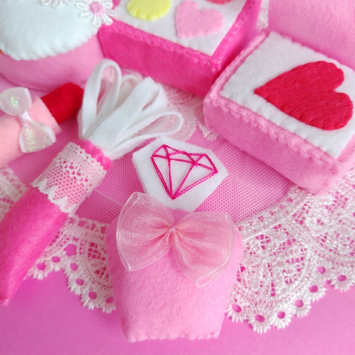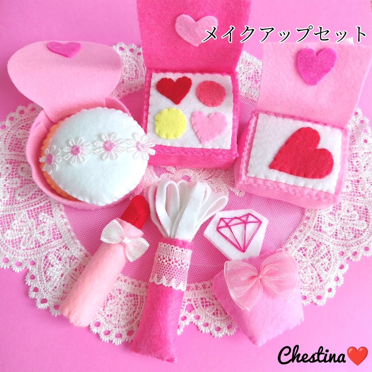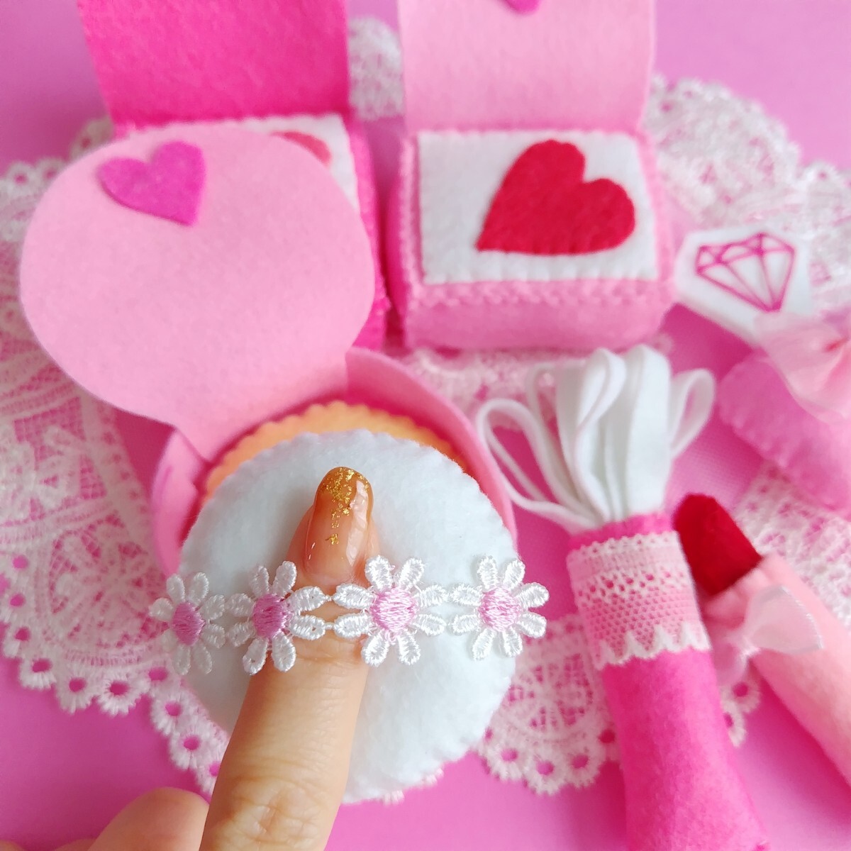ハンドメイド フェルト お化粧ごっこ ピンク