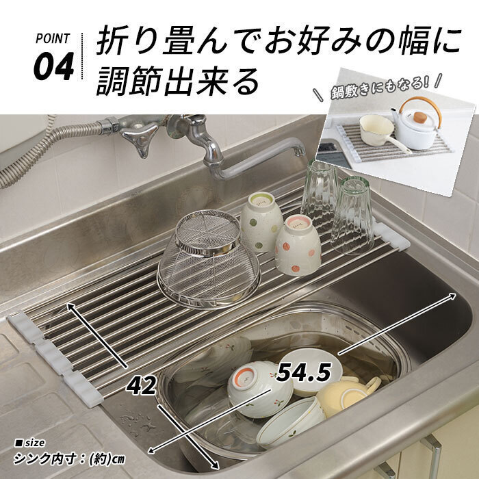 | 商品名: | 水切りラック 折りたたみ ステンレス 伸縮 幅23.5×奥行37~59cm スリム シンク上 水切り マット スライドラック シンクラック M5-MGKUCY00003 |