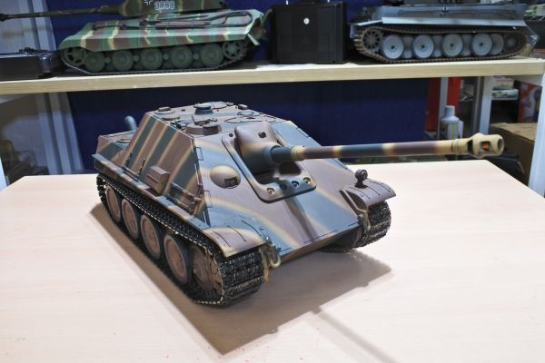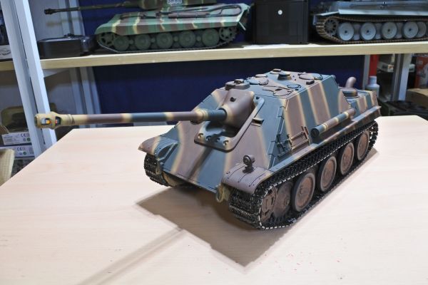 ホビー用アクリル塗装、ホビー用ブラックスチールギアセット(4 in 1 スチールギア、ベアリング付き)、メタルシャーシ、メタルサスペンションアーム、メタルトラックアジャスター、メタルスプロケットホイール、メタルアイドラーホイール、メタルトラック、メタルショルダーホイール(32個のベアリング付き)、前後用のメタルフック、メタル製のフォトエッチンググリル付き、NI-MH 2000mAhバッテリー、新型V.03電動システム搭載。