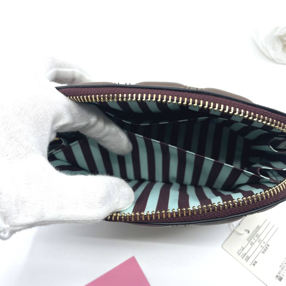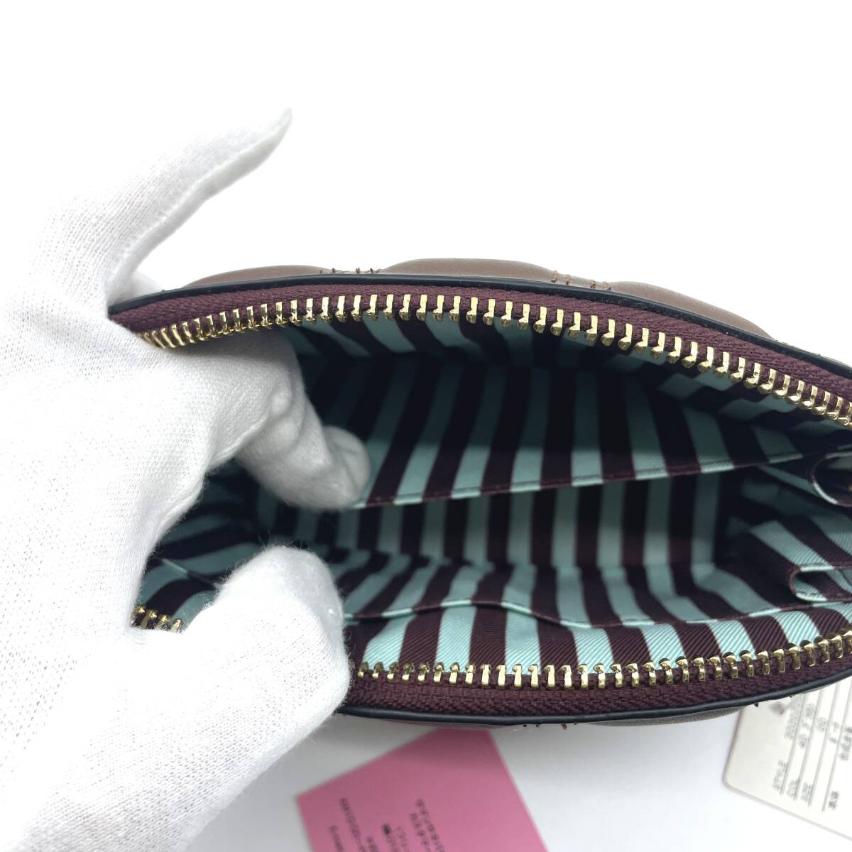 【未使用保管品】SAMANTHAVEGA サマンサベガ チョコレート風ポーチ ブラウン ゴールド金具 ロゴプレート 内生地ストライプ チョコミント