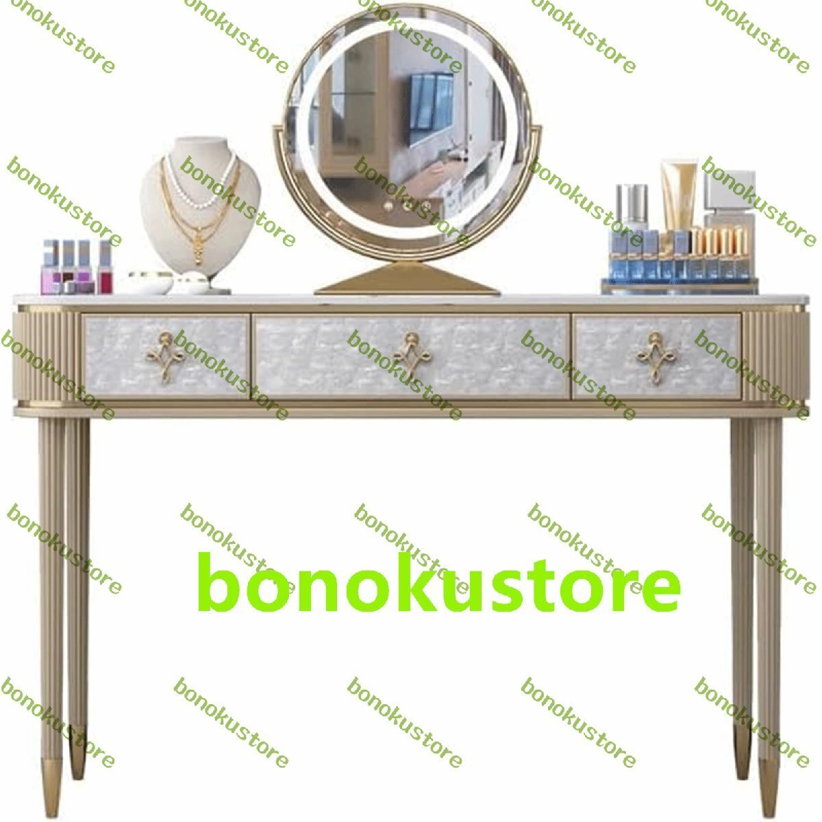 新しい家具 シェルストライプスレートドレッシングテーブルタッチ回転可能発光ミラードレッサー化粧台デスク大理石テーブルトップ化粧テーブル コンピューターデスク