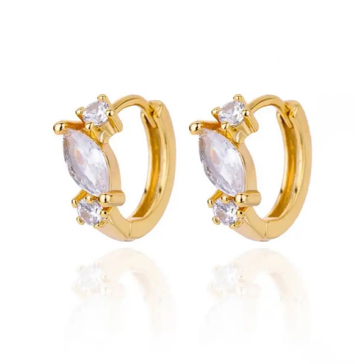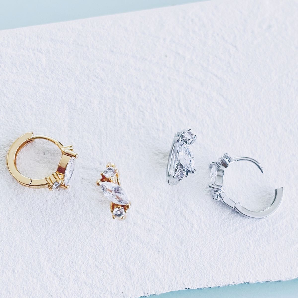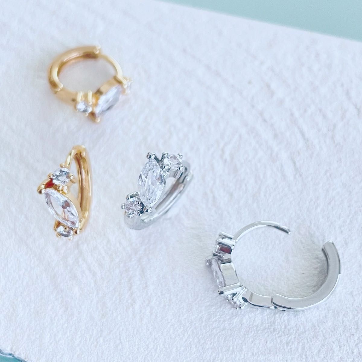 存在感のある3石のビジューが輝く、中折れタイプのミニフープピアス♪