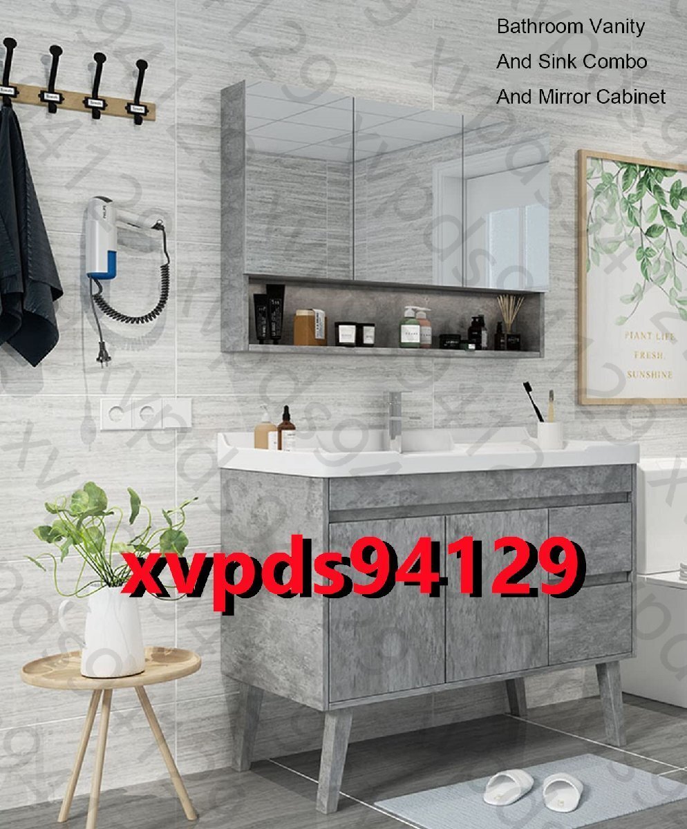 バスルームバニティとシンクコンボ ミラーキャビネット収納 バスルームバニティ 2ドア付き 内部棚と引き出し付き 取り付け簡単