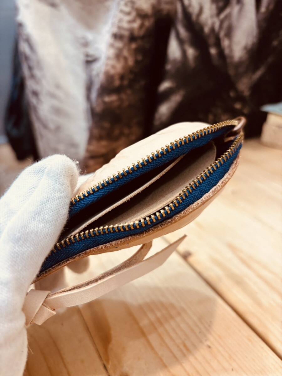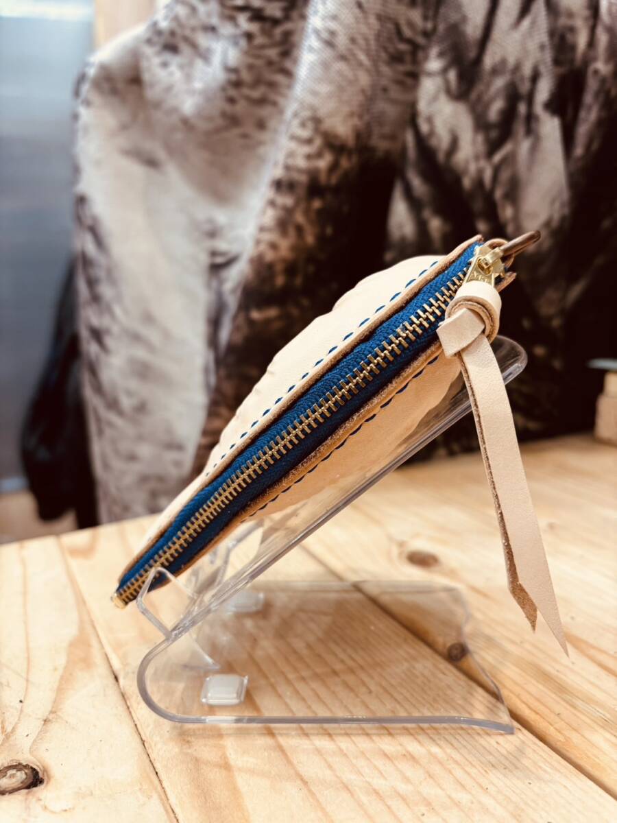 レザーたい焼きポーチ 2way ブルー色 財布 小銭入れ 小物入れ ヌメ革 カラー15色以上あり 推しカラー