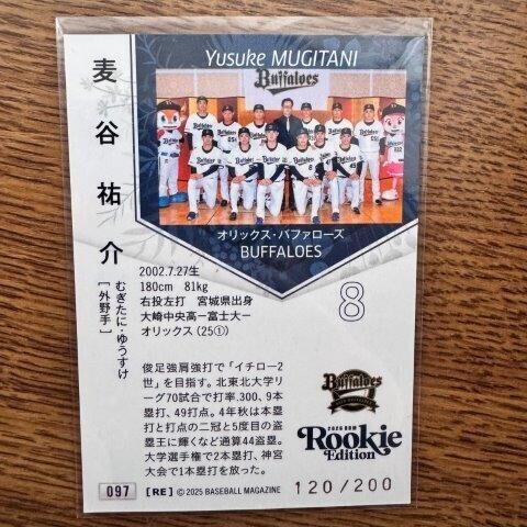 BBM 2025 ルーキーエディション オリックス 麦谷祐介 銀箔 200枚限定 3