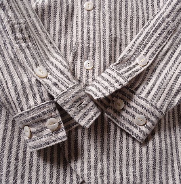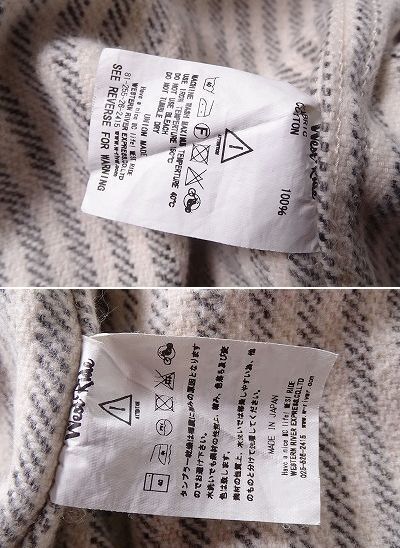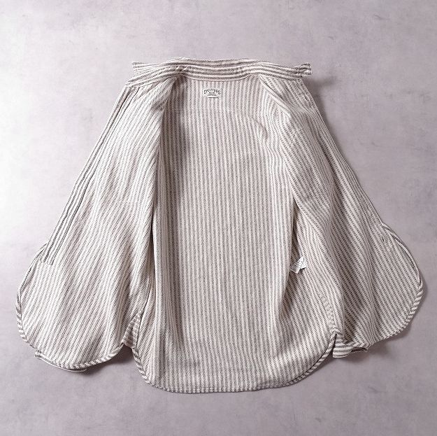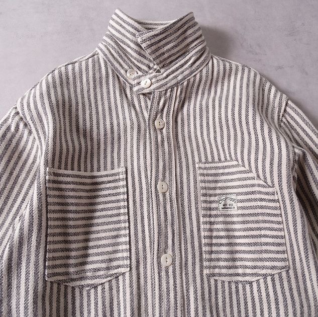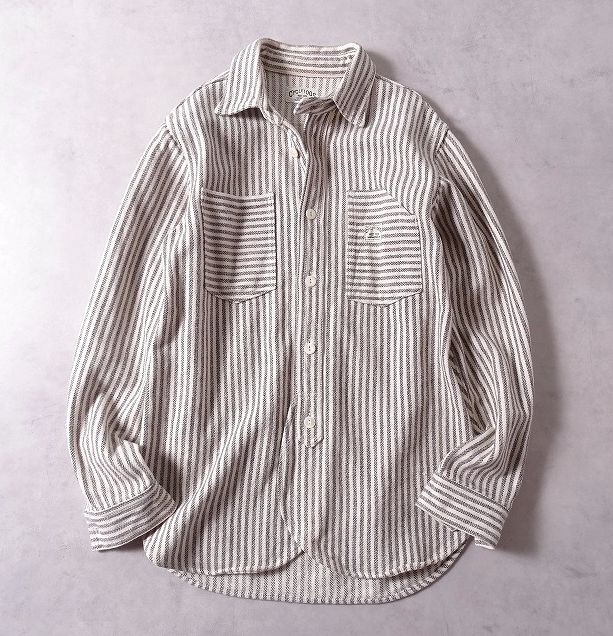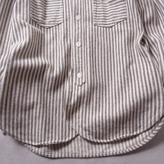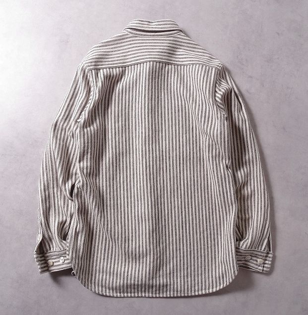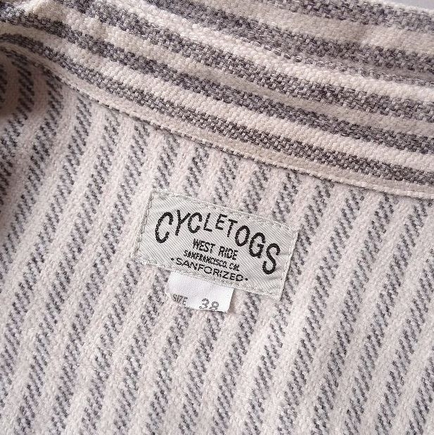 WEST RIDE CYCLE TOGS ウエストライド 厚手コットン ストライプ ネルシャツ 日本製 チンスト ワーク 長袖 メンズ (38) 白/グレー r-532