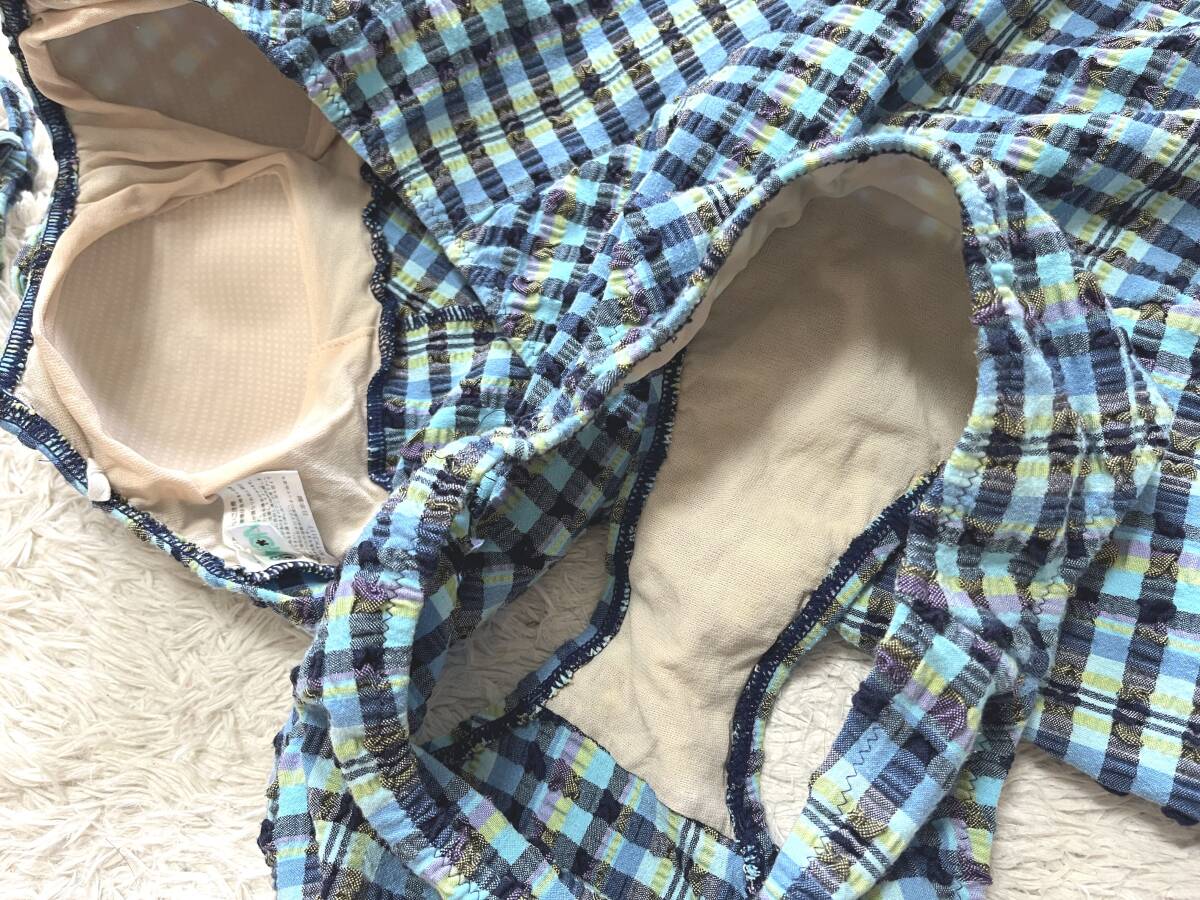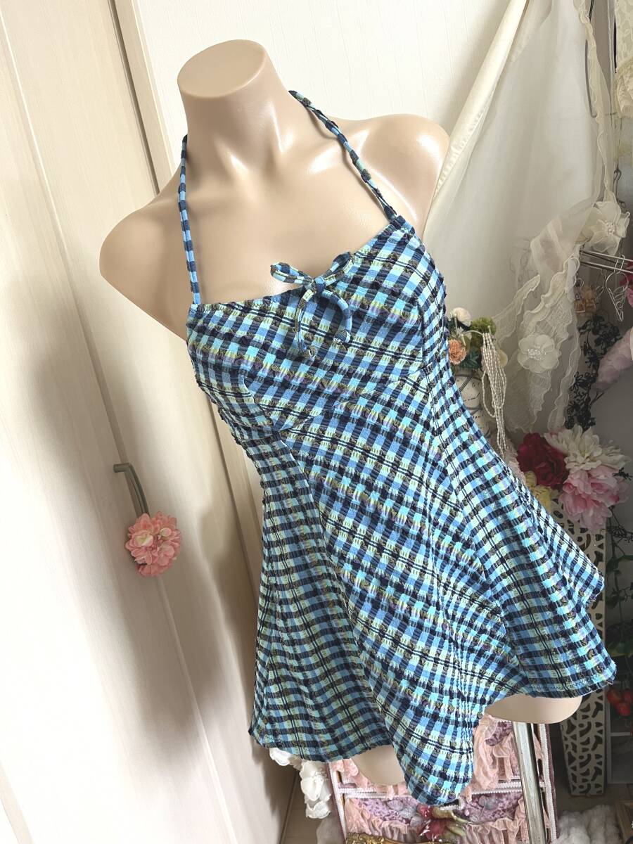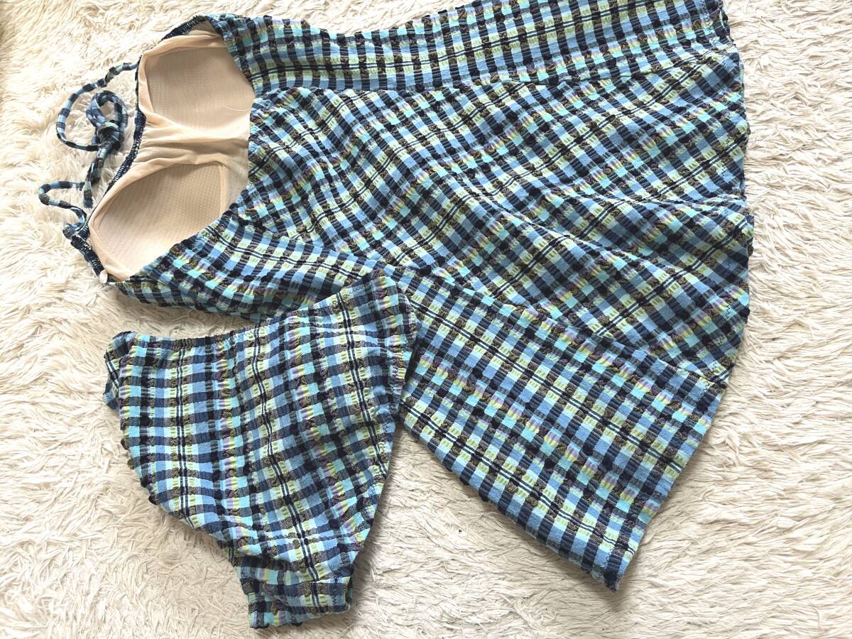 ●レディース水着9M●NON-NO*日本製◆縮れ地*ワンピース水着&水着パンツ*スカート水着:ライトブルーx濃紺