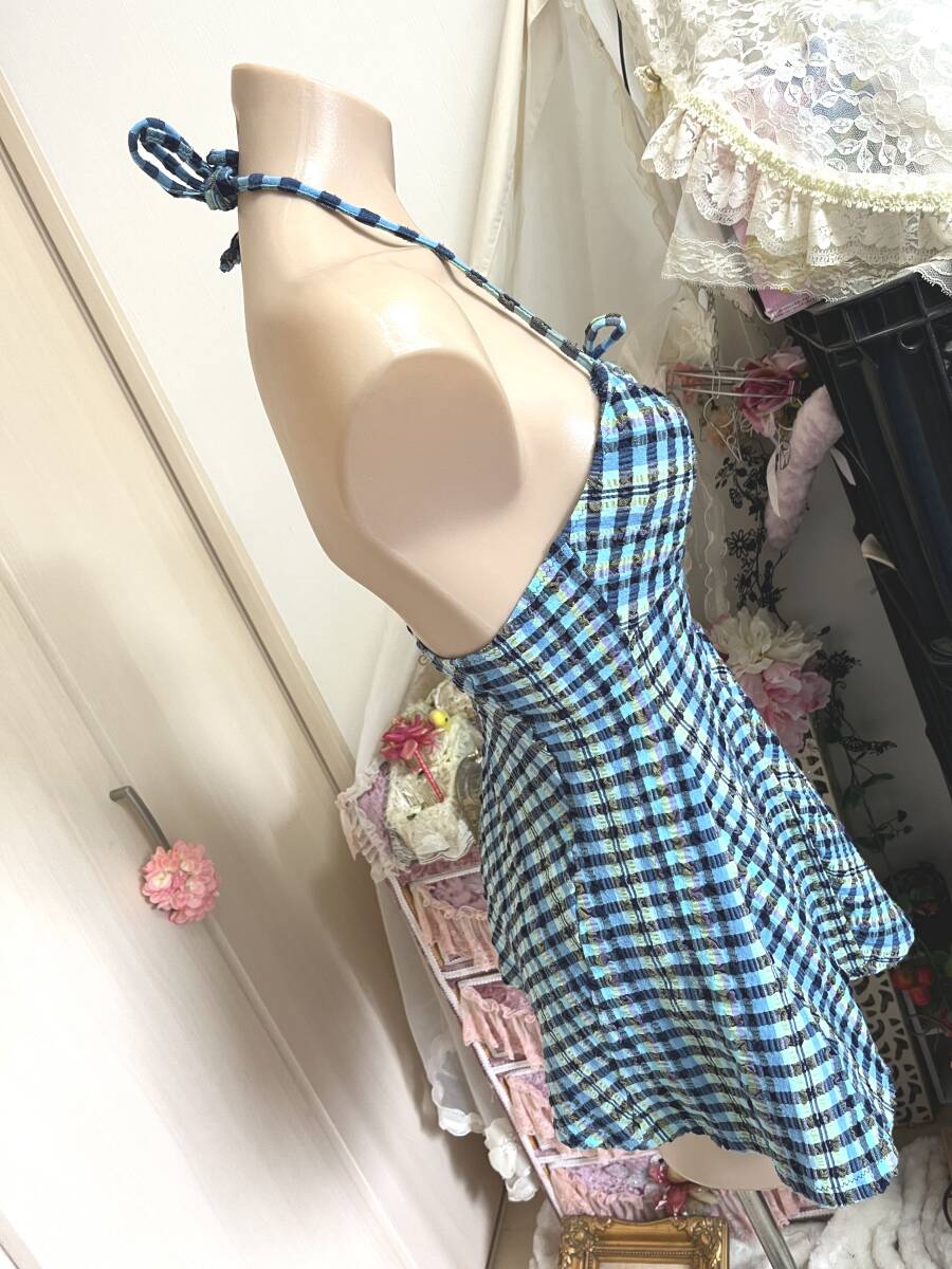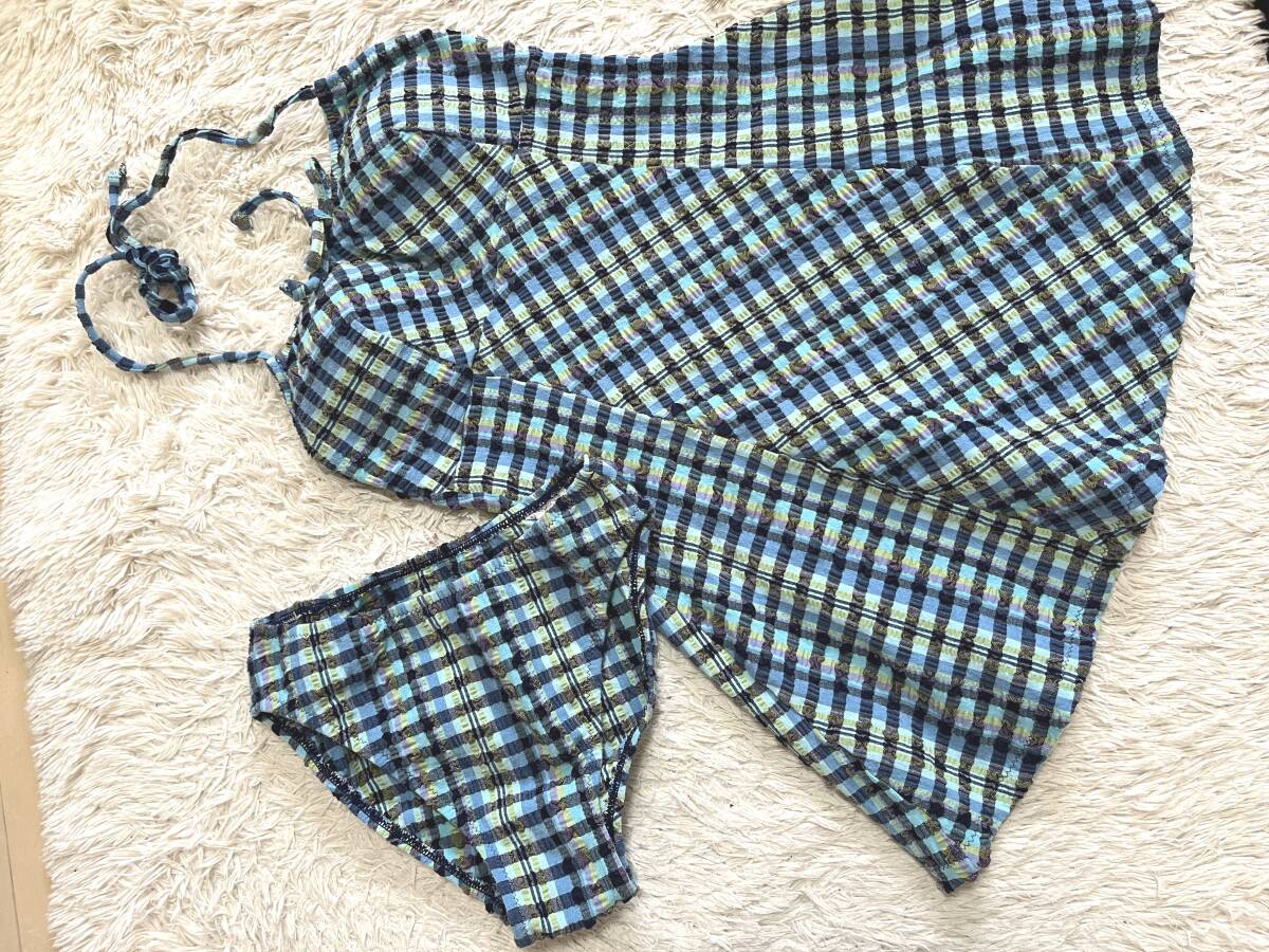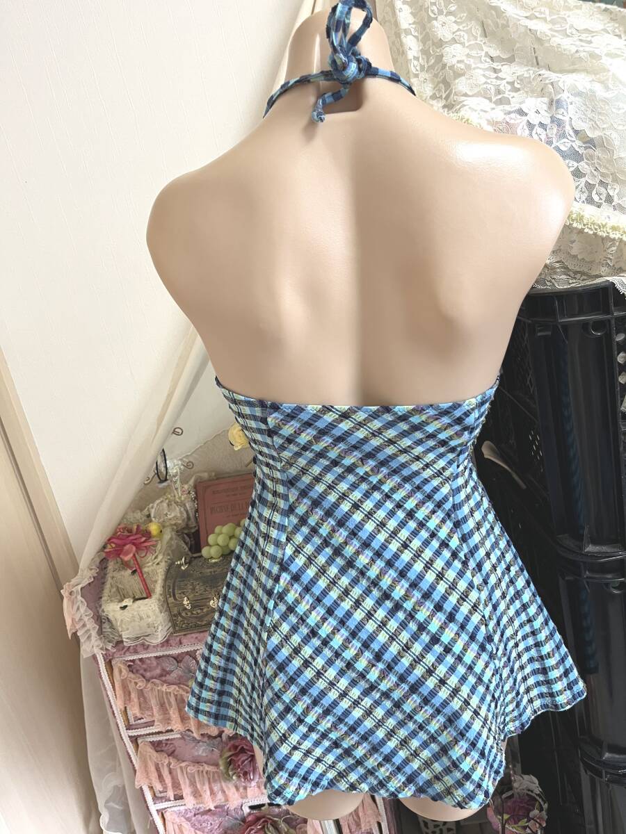 ●レディース水着9M●NON-NO*日本製◆縮れ地*ワンピース水着&水着パンツ*スカート水着:ライトブルーx濃紺