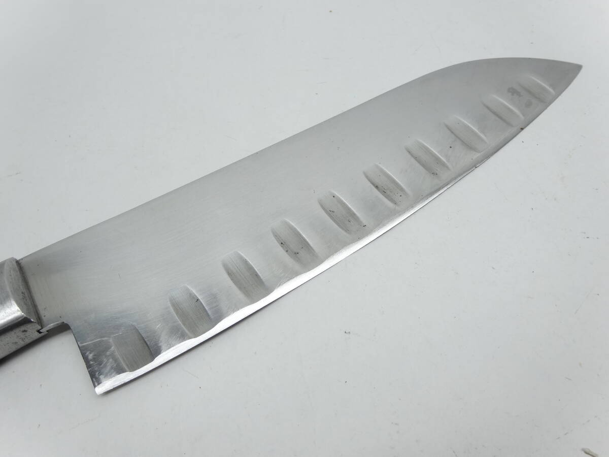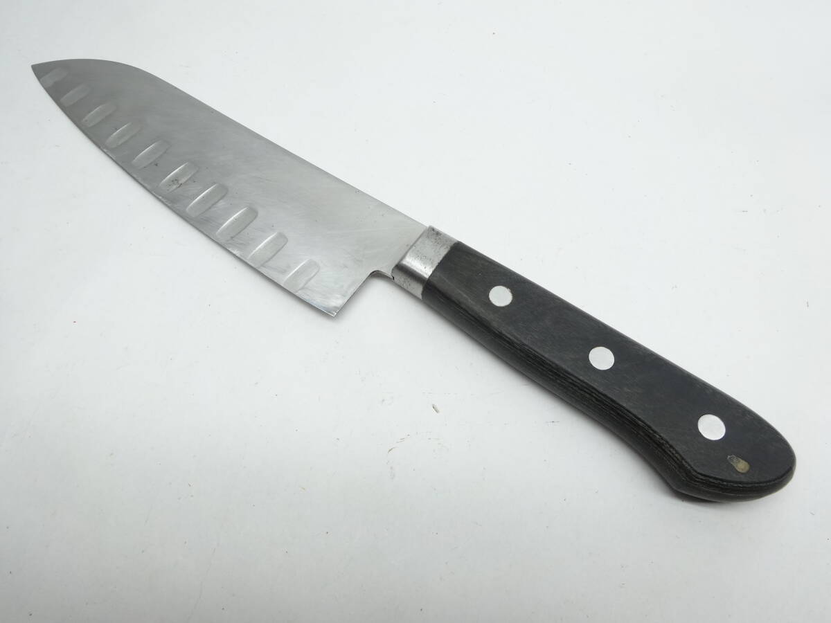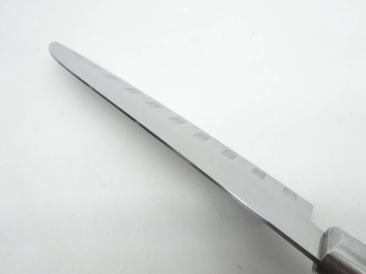 y4078 使い込まれたスリット包丁 165㎜ ステンレス鋼 鍔付き 料理包丁