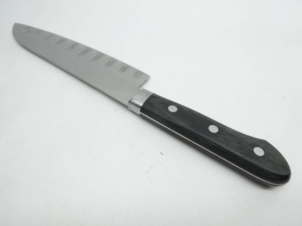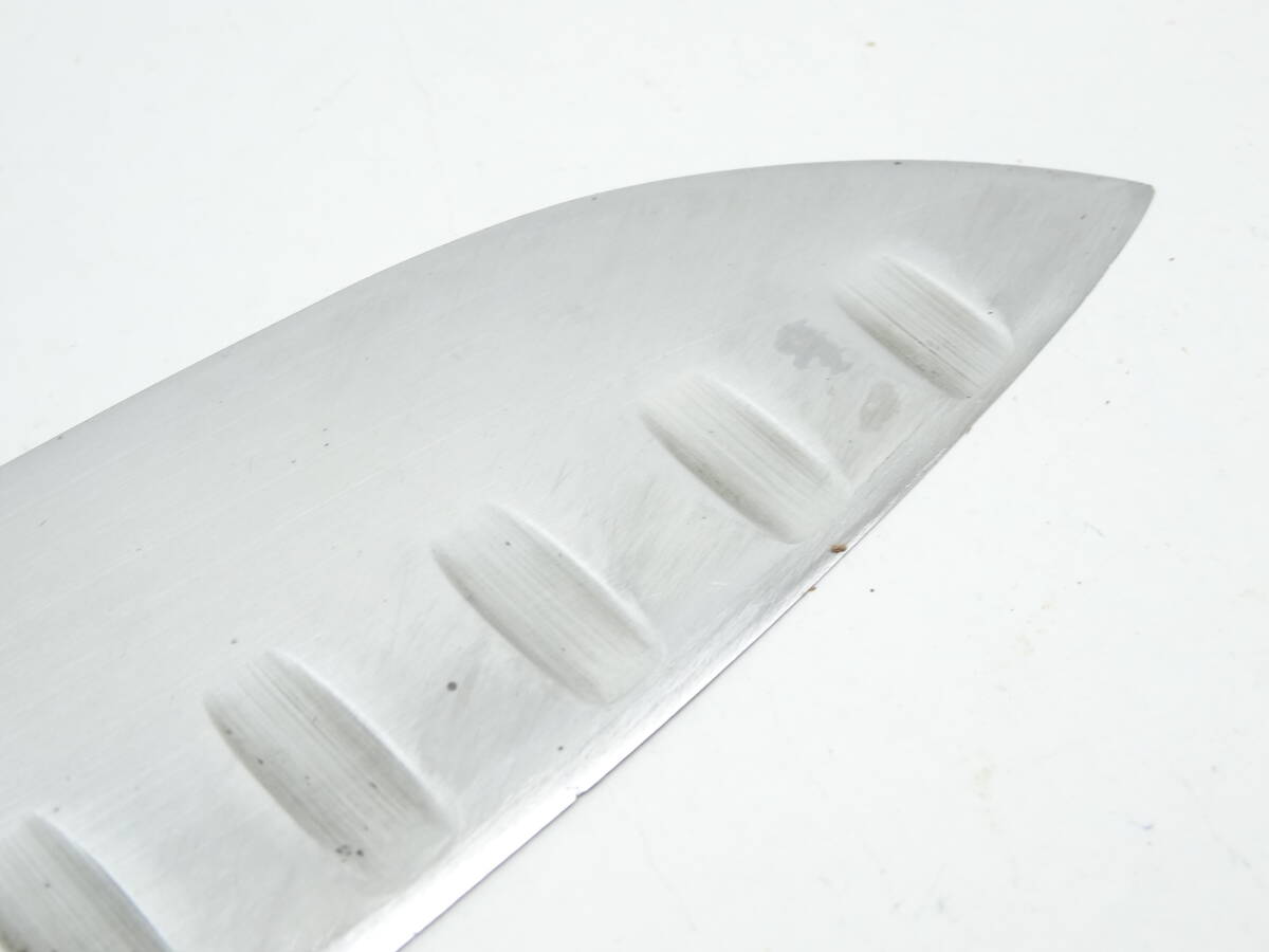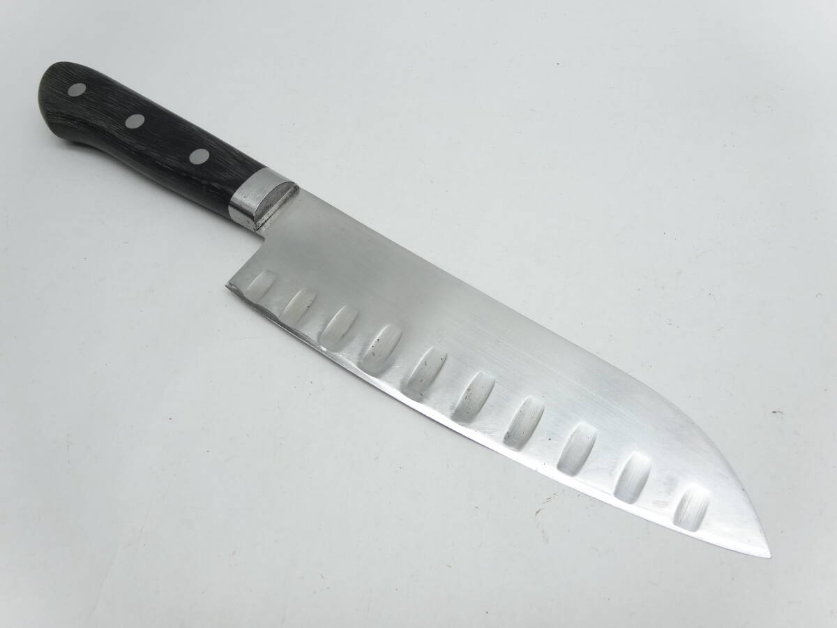 y4078 使い込まれたスリット包丁 165㎜ ステンレス鋼 鍔付き 料理包丁