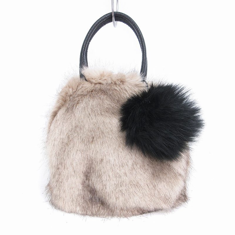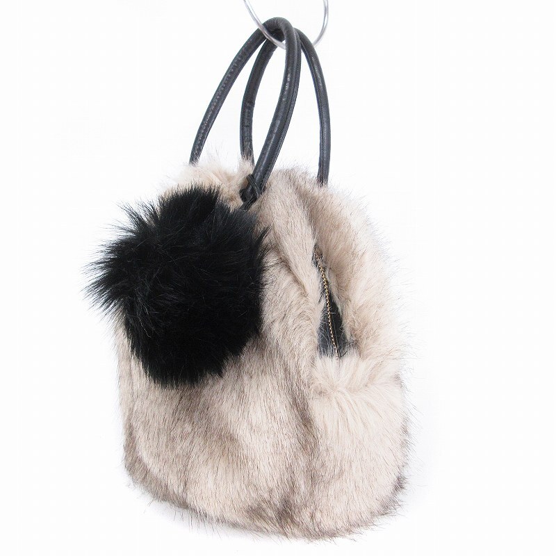 レリアン Leilian ハンドバッグ フェイクファー ポンポン付き ベージュ レディース
