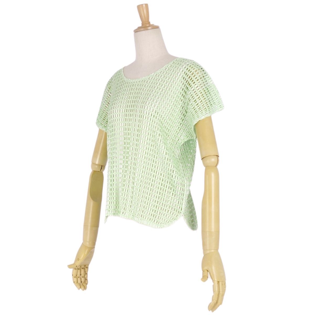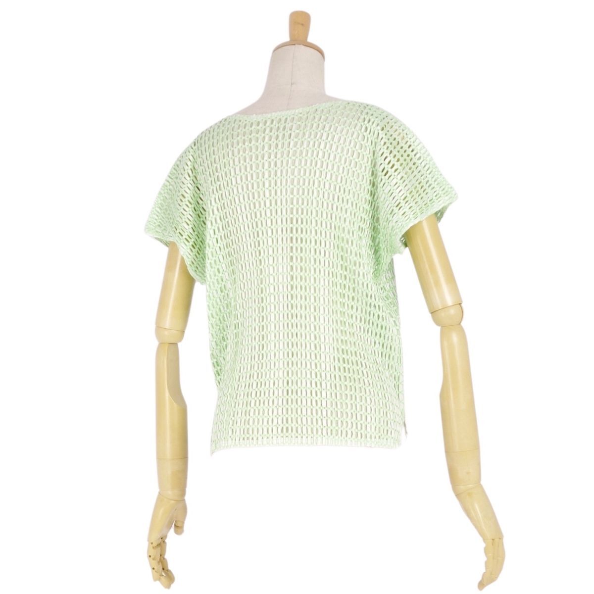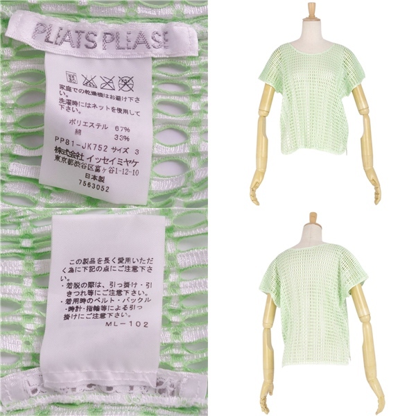 | 極美品 プリーツプリーズ イッセイミヤケ PLEATS PLEASE シャツ ブラウス フレンチスリーブ メッシュ 3(L相当) グリーン |