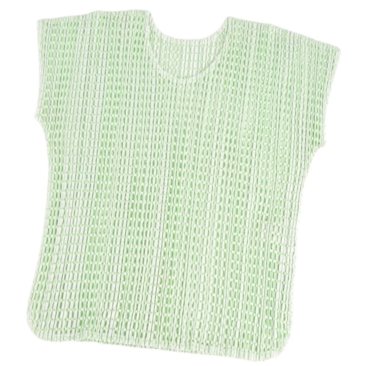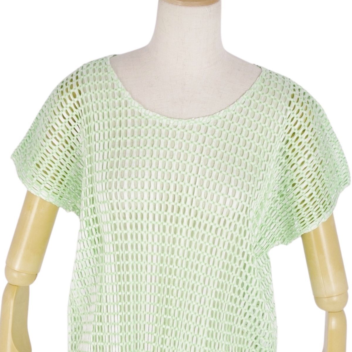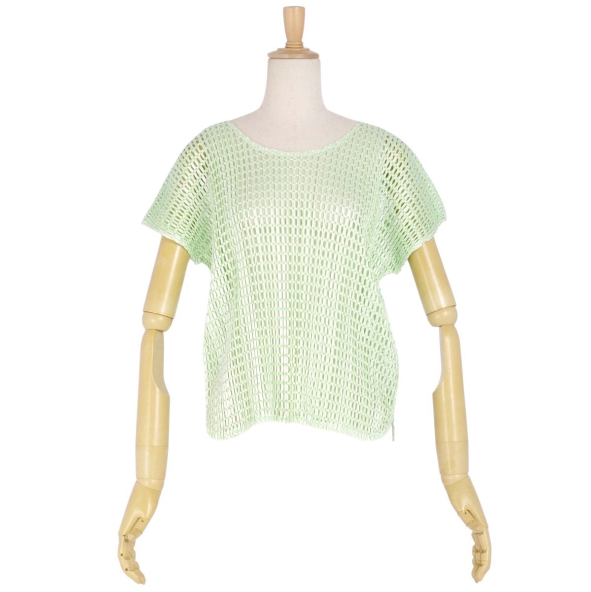 | 極美品 プリーツプリーズ イッセイミヤケ PLEATS PLEASE シャツ ブラウス フレンチスリーブ メッシュ 3(L相当) グリーン |