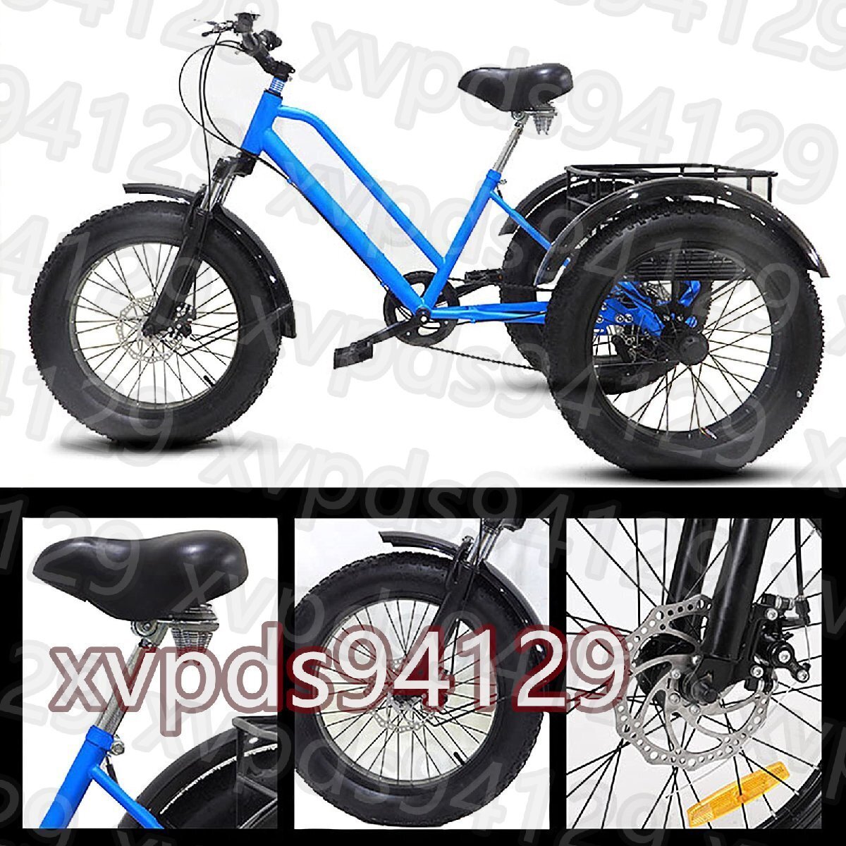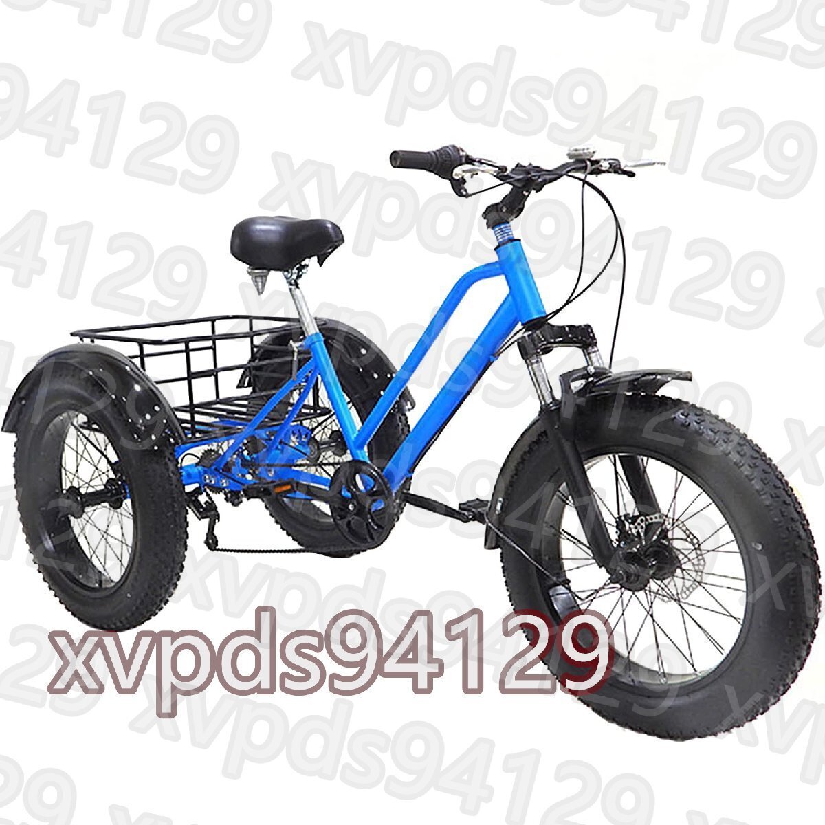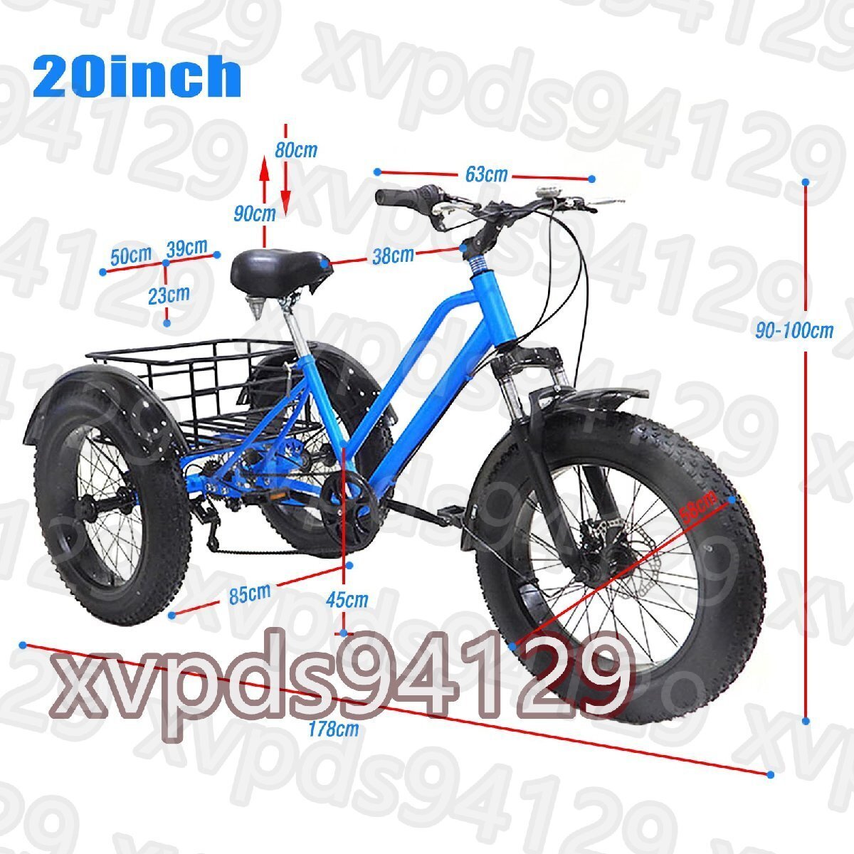 大人の三輪車自転車20 "バスケット付き、ショッピング用の7スピードアダルトトライク、ファットバイクスノートライク、設置ツール、大人用の快適な三輪車、積載容量330 lbs/150kg