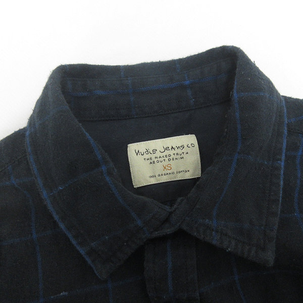 C■ヌーディージーンズ/Nudie Jeans チェック柄 長袖シャツ/ネルシャツ【XS】紺/MENS■56【中古】