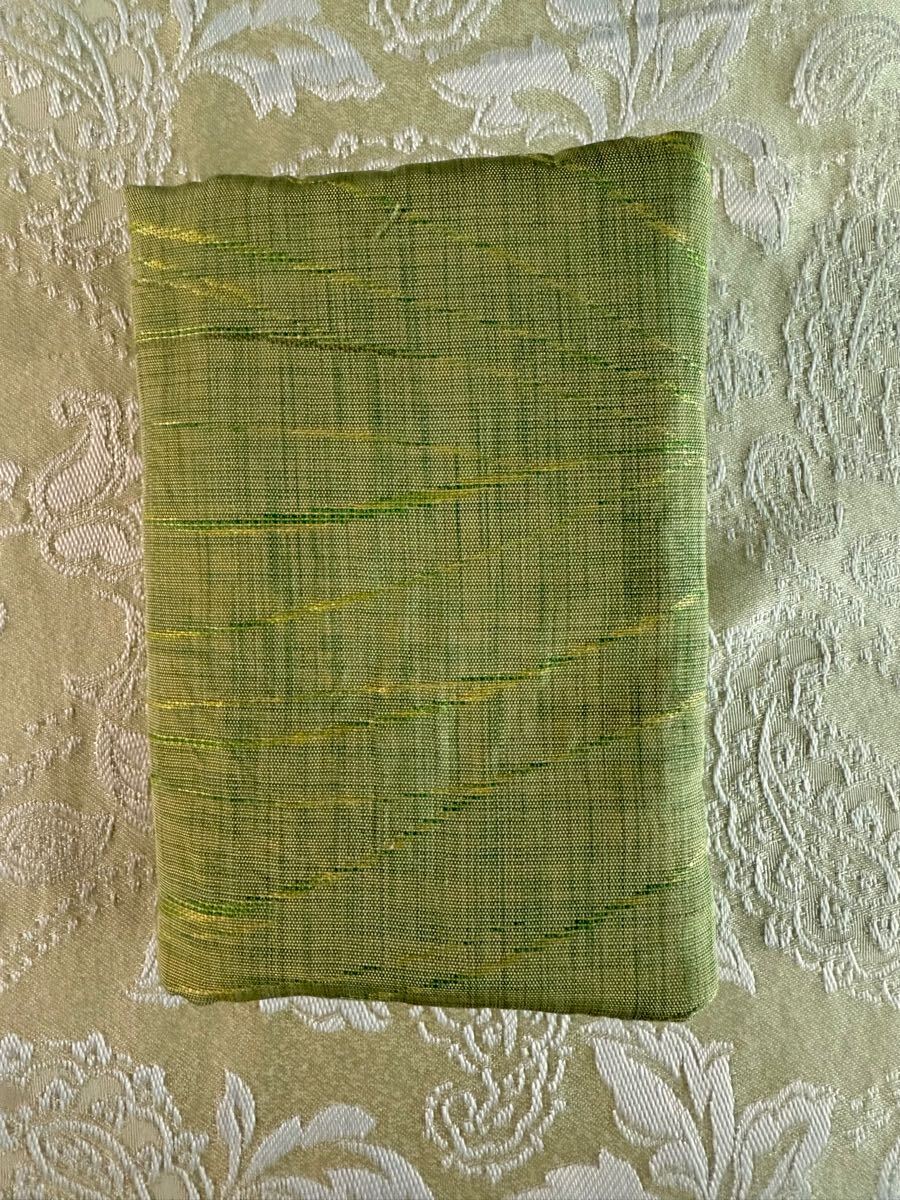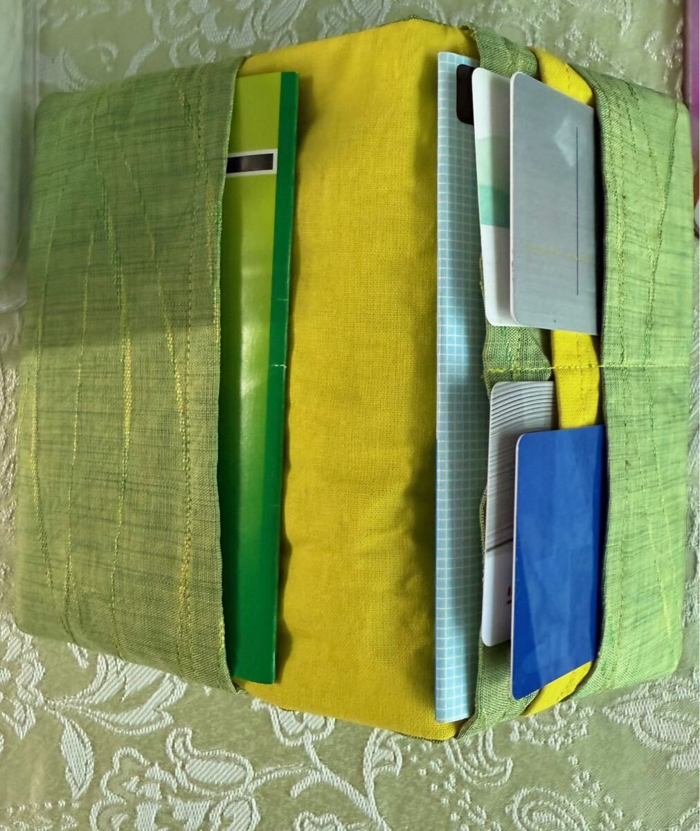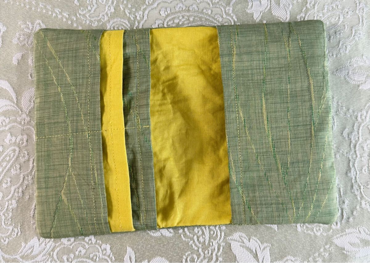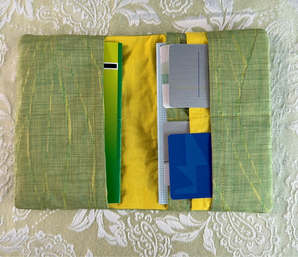 きものリメイク おくすり手帳・通帳・カードケース 黄緑紬柄