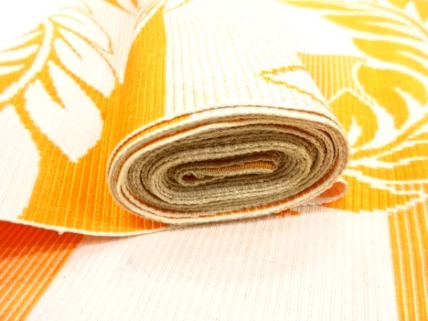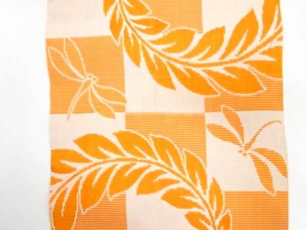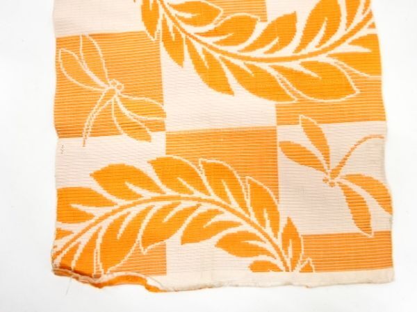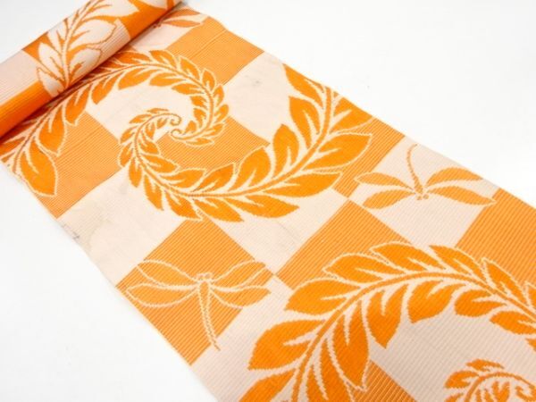 ys7286132; 市松に草葉・蜻蛉模様織り出し 八寸帯地反物【アンティーク】【着】