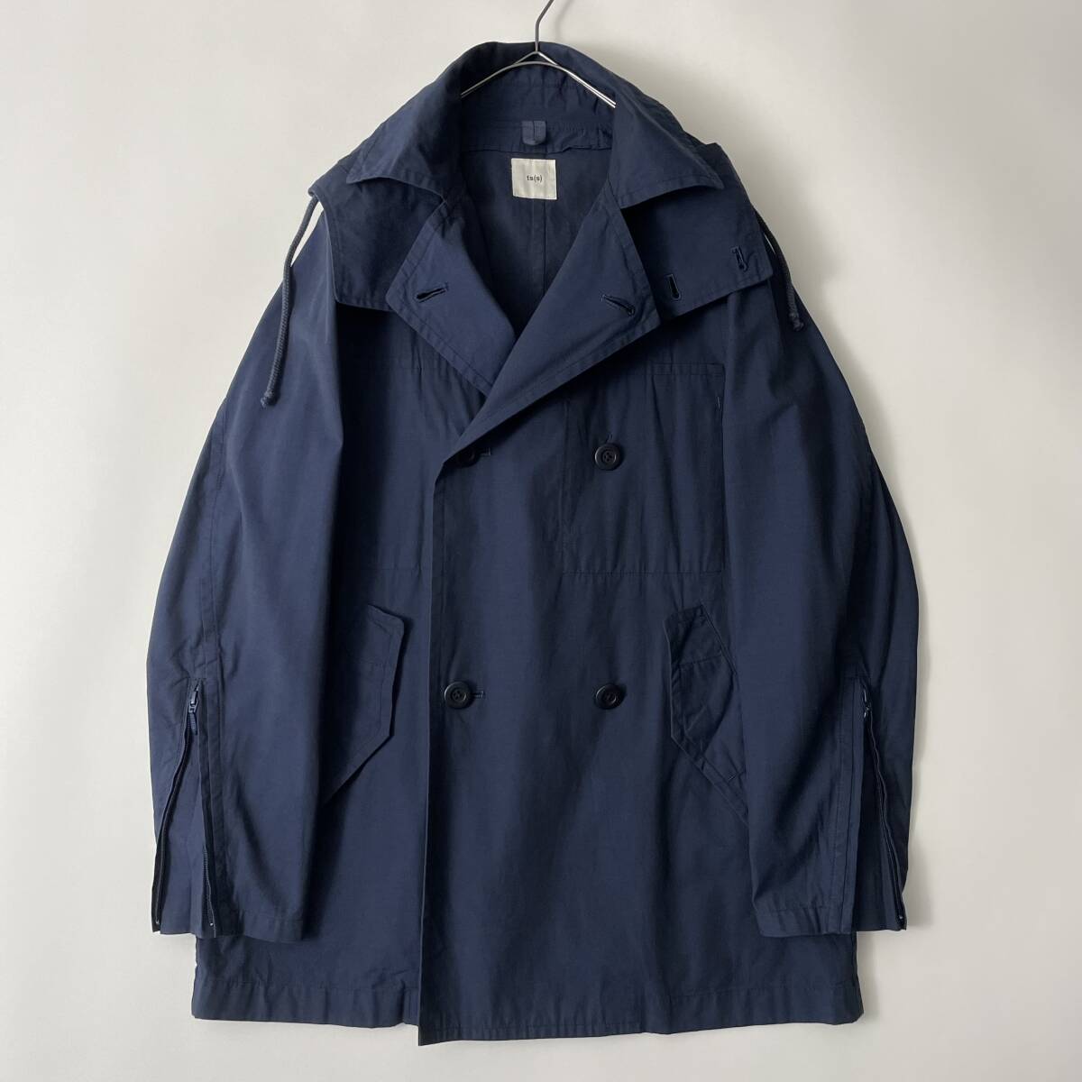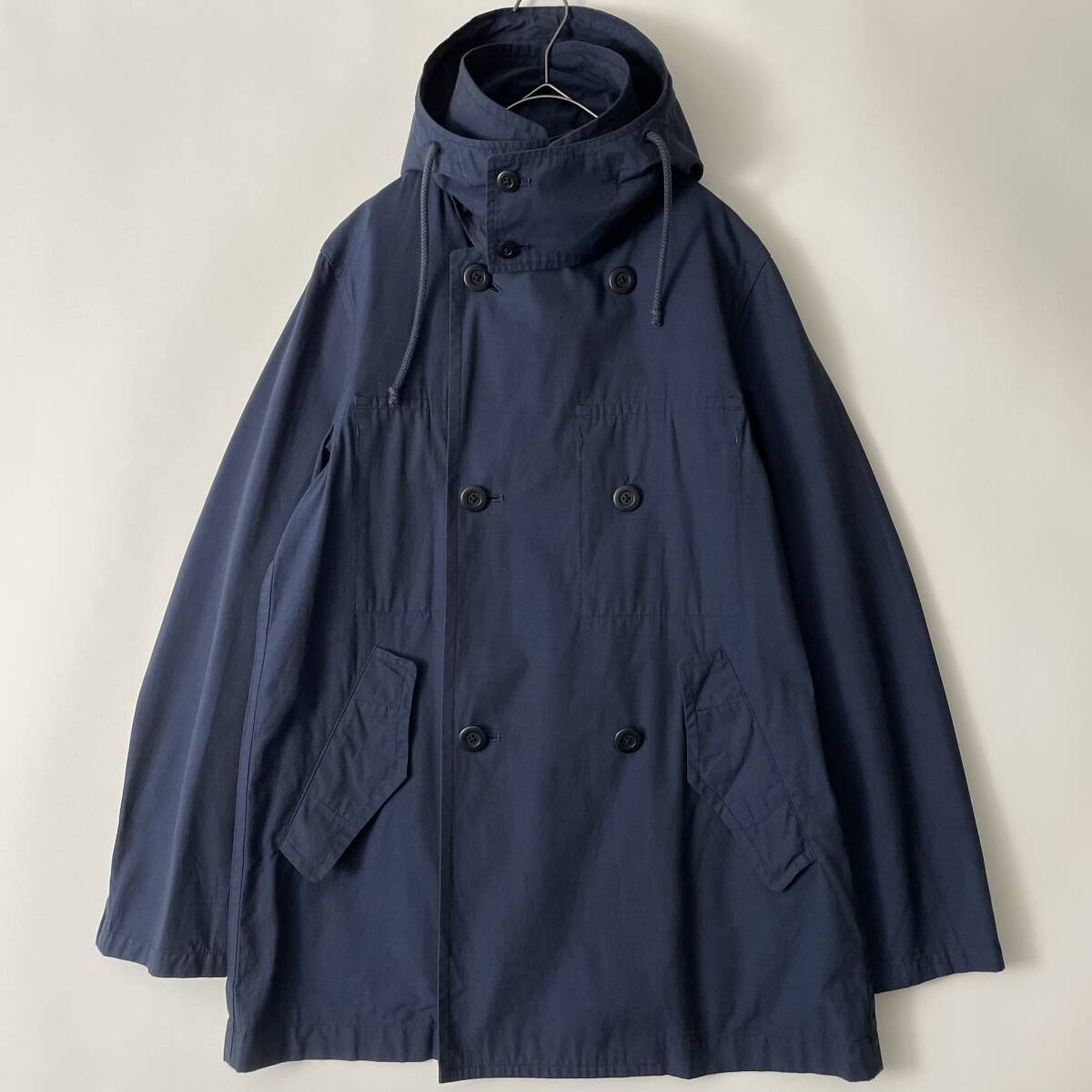 ts(s) size/1 (J) ティーエスエス ダブル トレンチコート フーデッドジャケット パーカー ライトアウター ネイビー 紺無地 日本製 COAT