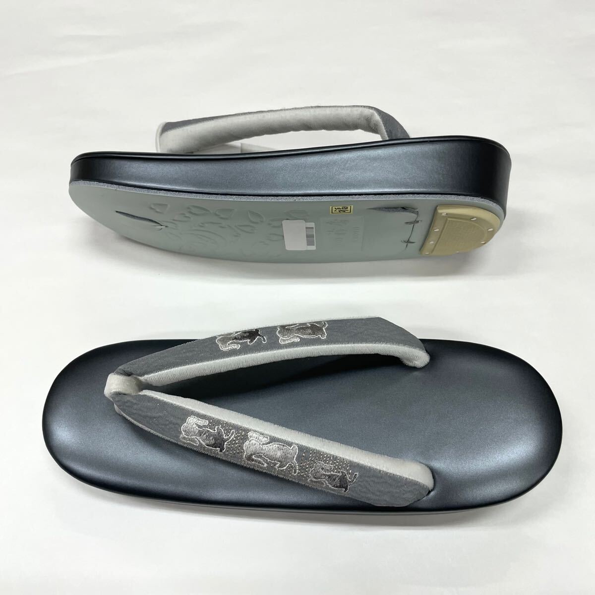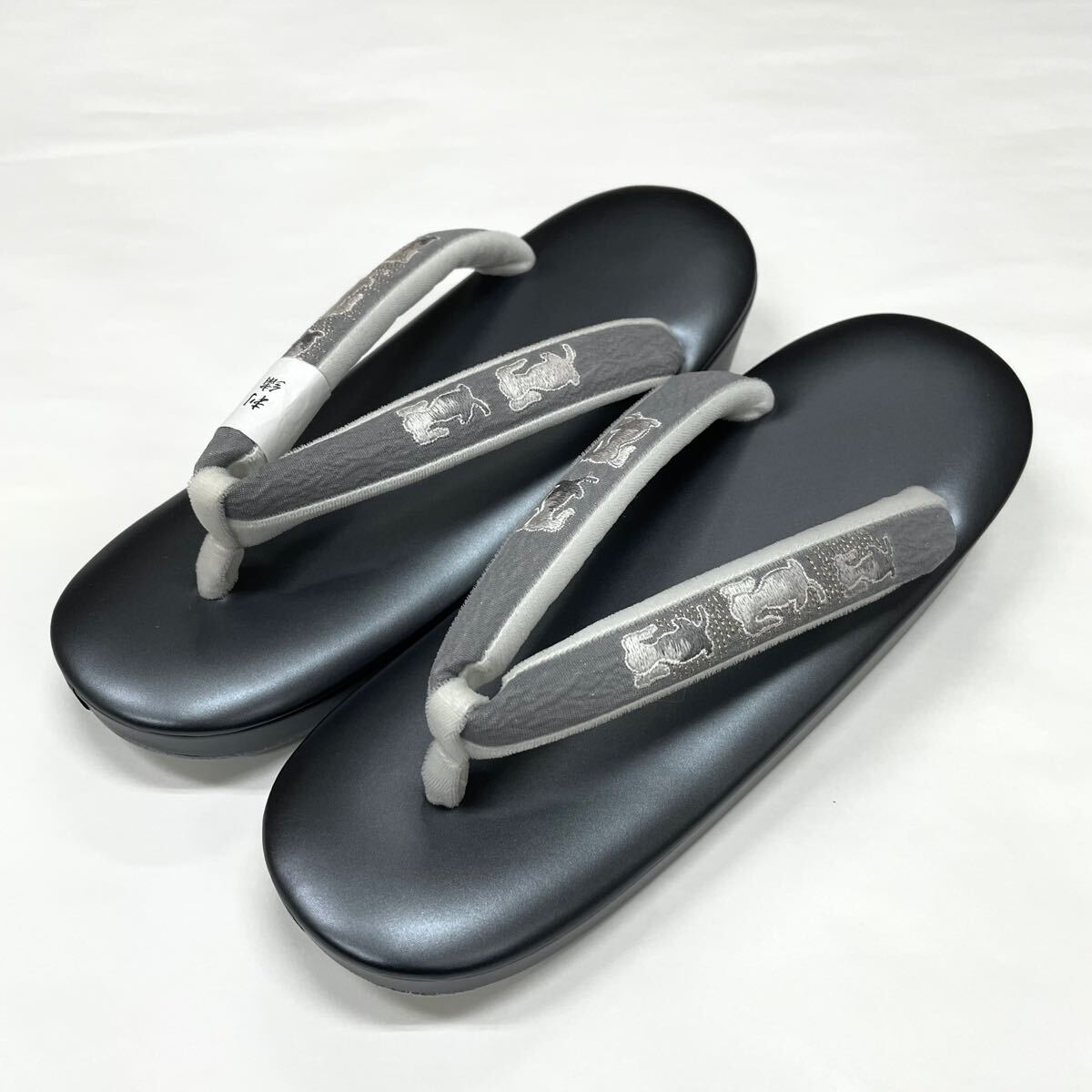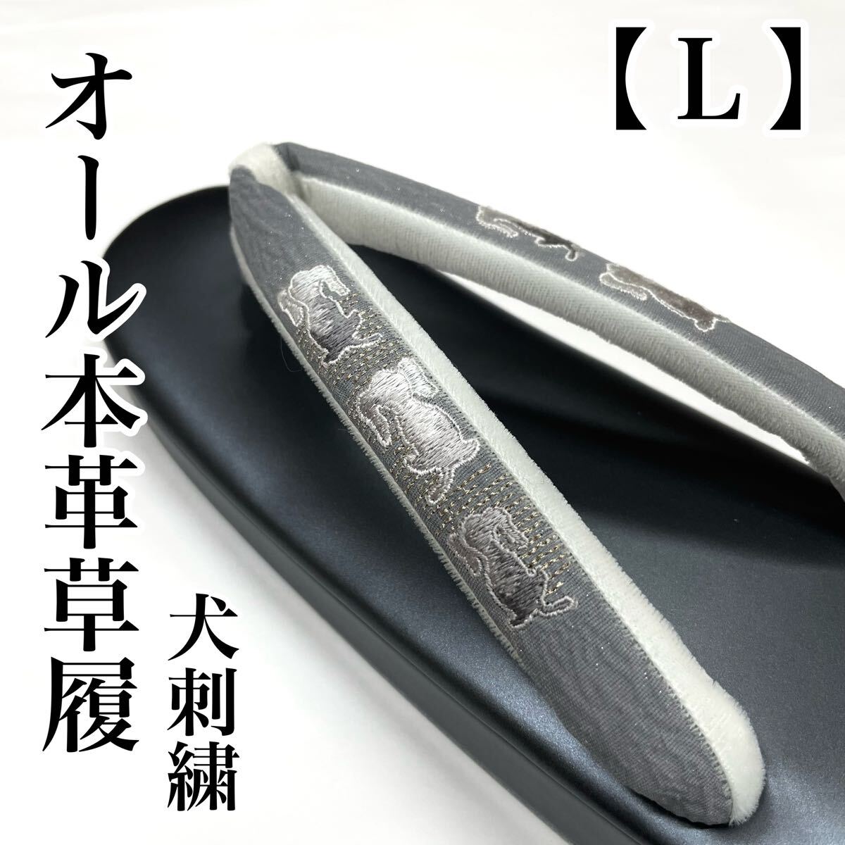 本牛革 草履 フォーマル カジュアル 刺繍 鼻緒 本皮 本革 日本製 女草履 女性用 女用 L寸 ブルー グレー 犬 dog
