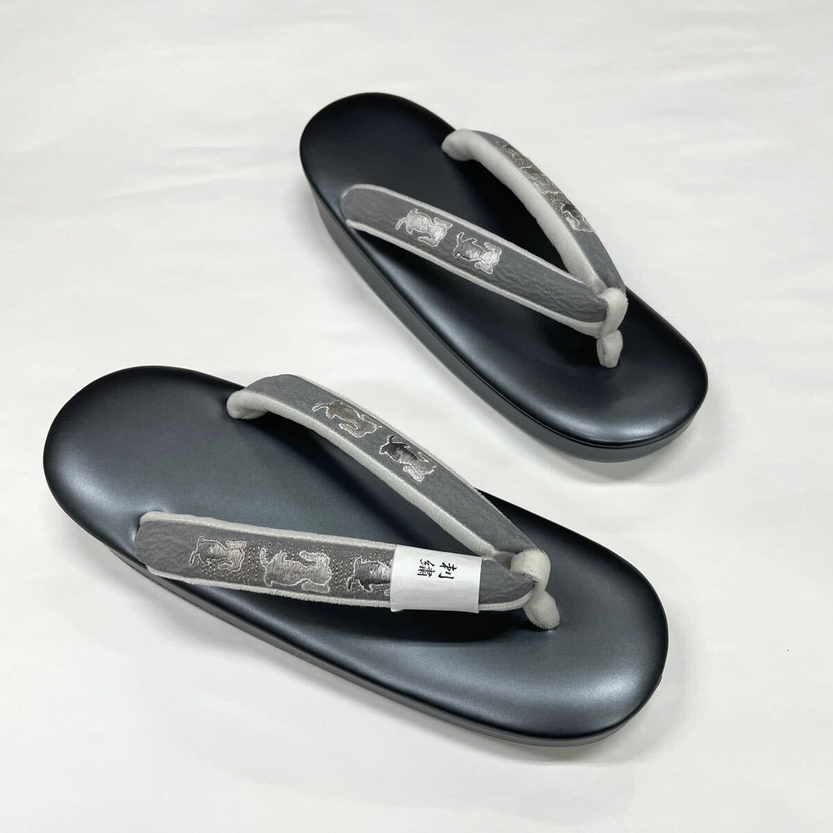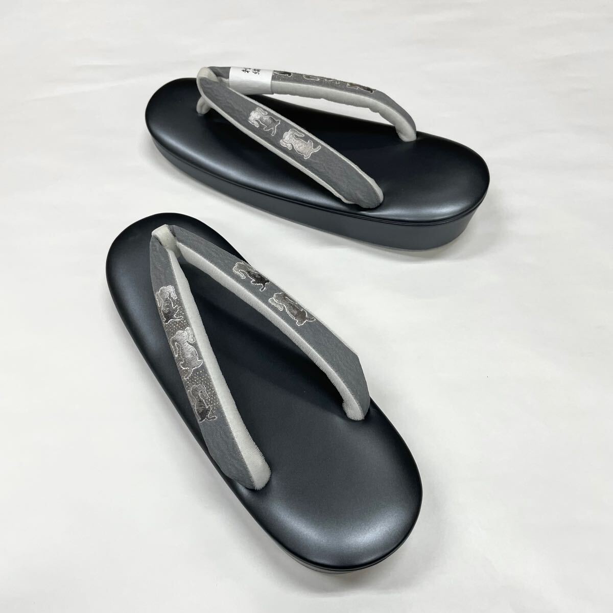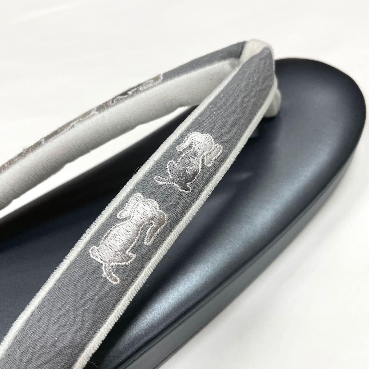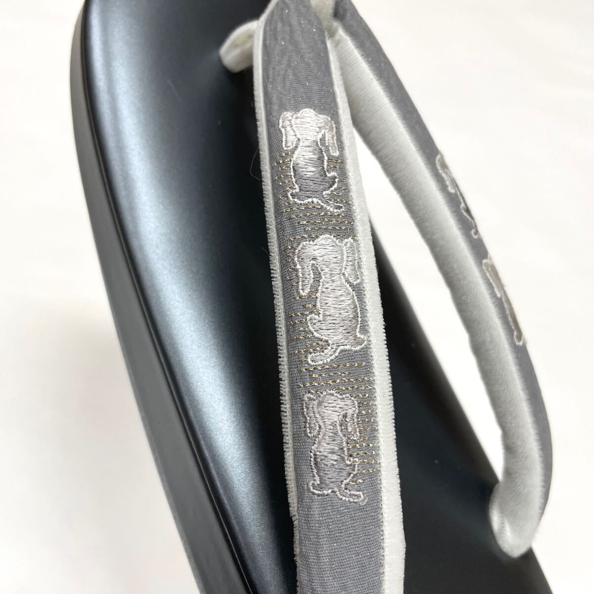 こちらは可愛らしい「ワンちゃん」を鼻緒に刺繍した草履となっており、草履台は「天」「巻き」「底」全てに本牛革を採用しておりますので半永久的にご愛用いただけるワンランクアップの日本製草履となっております。