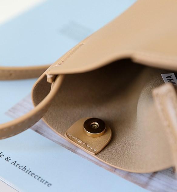 バッグの開口部分は磁石のボタン付きで、しっかり閉じるので安心してお使いいただけます。