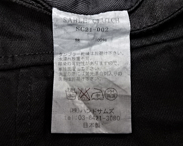 S【SABLE CLUTCH JACKET SC21-002 Black セーブルクラッチ ジャケット ブラック コットン ジャケット】