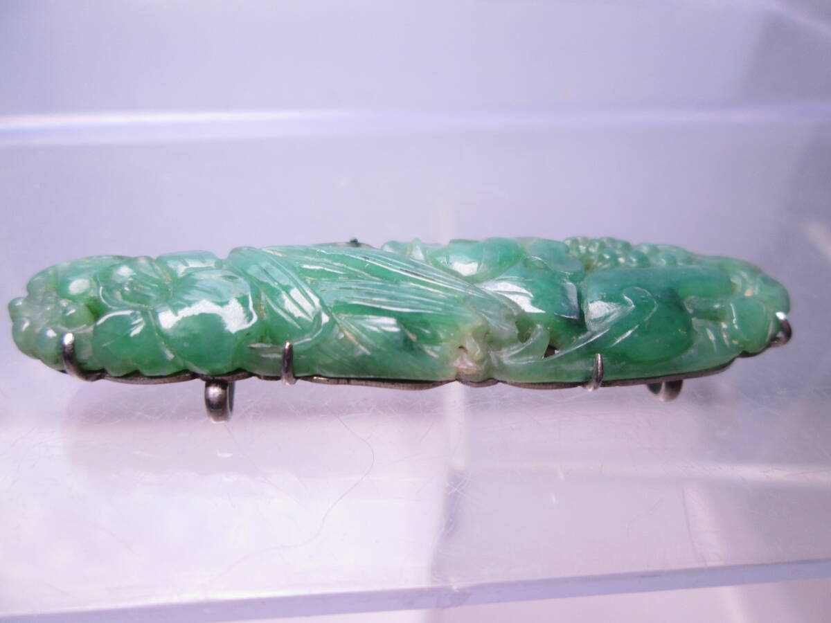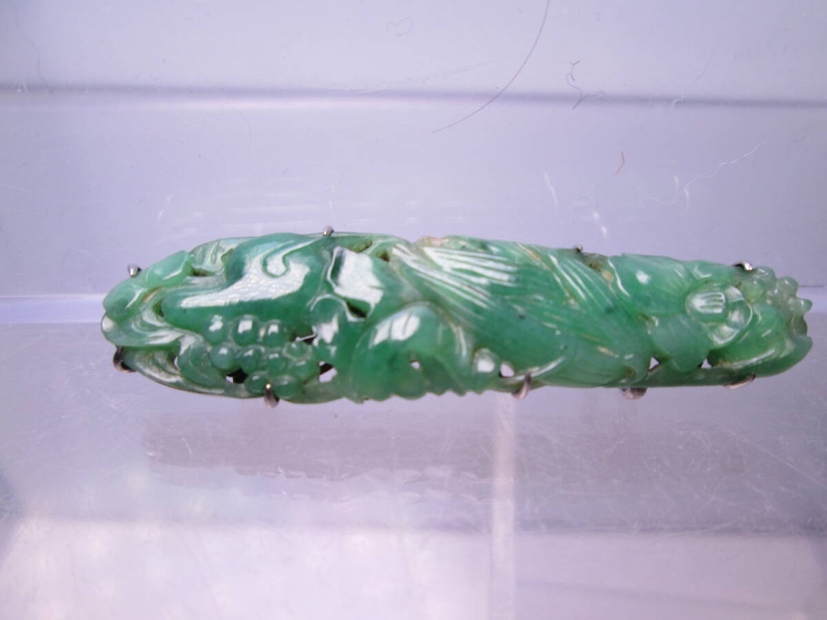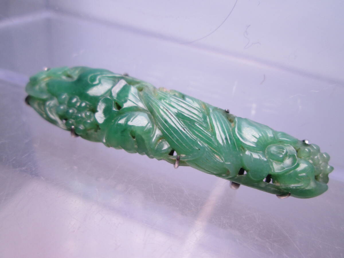 【江月】アンティーク・本翡翠 花彫刻の帯留め 6,4g