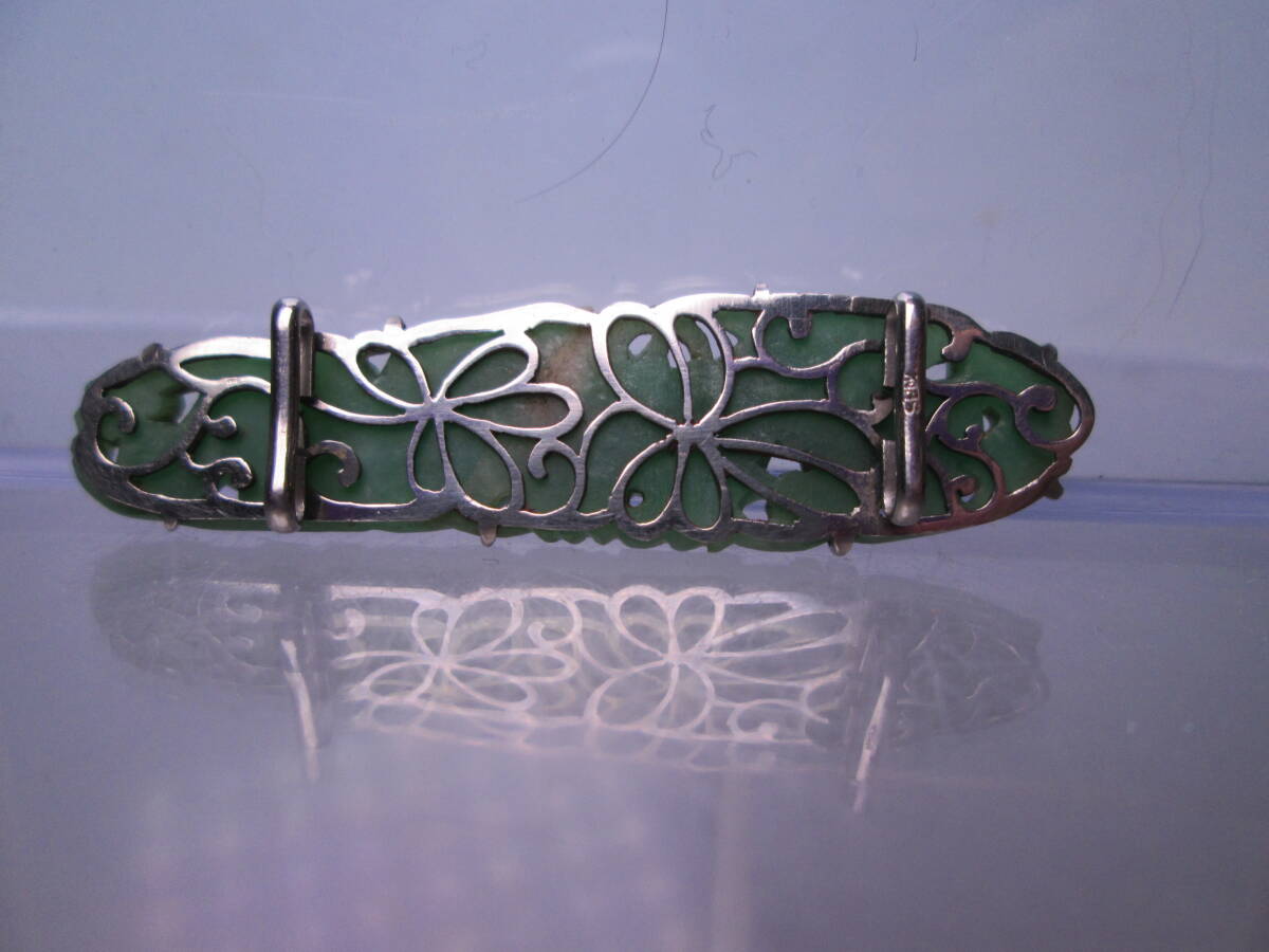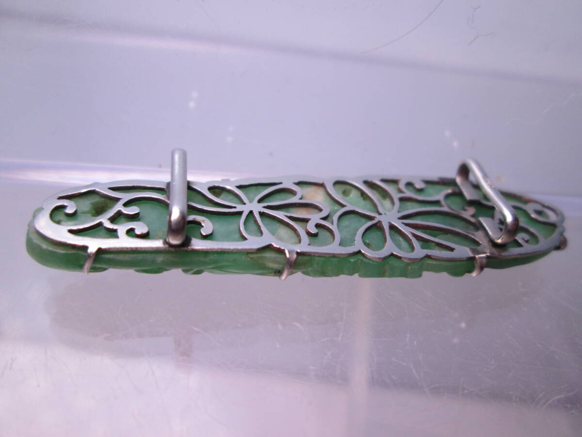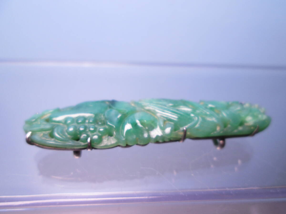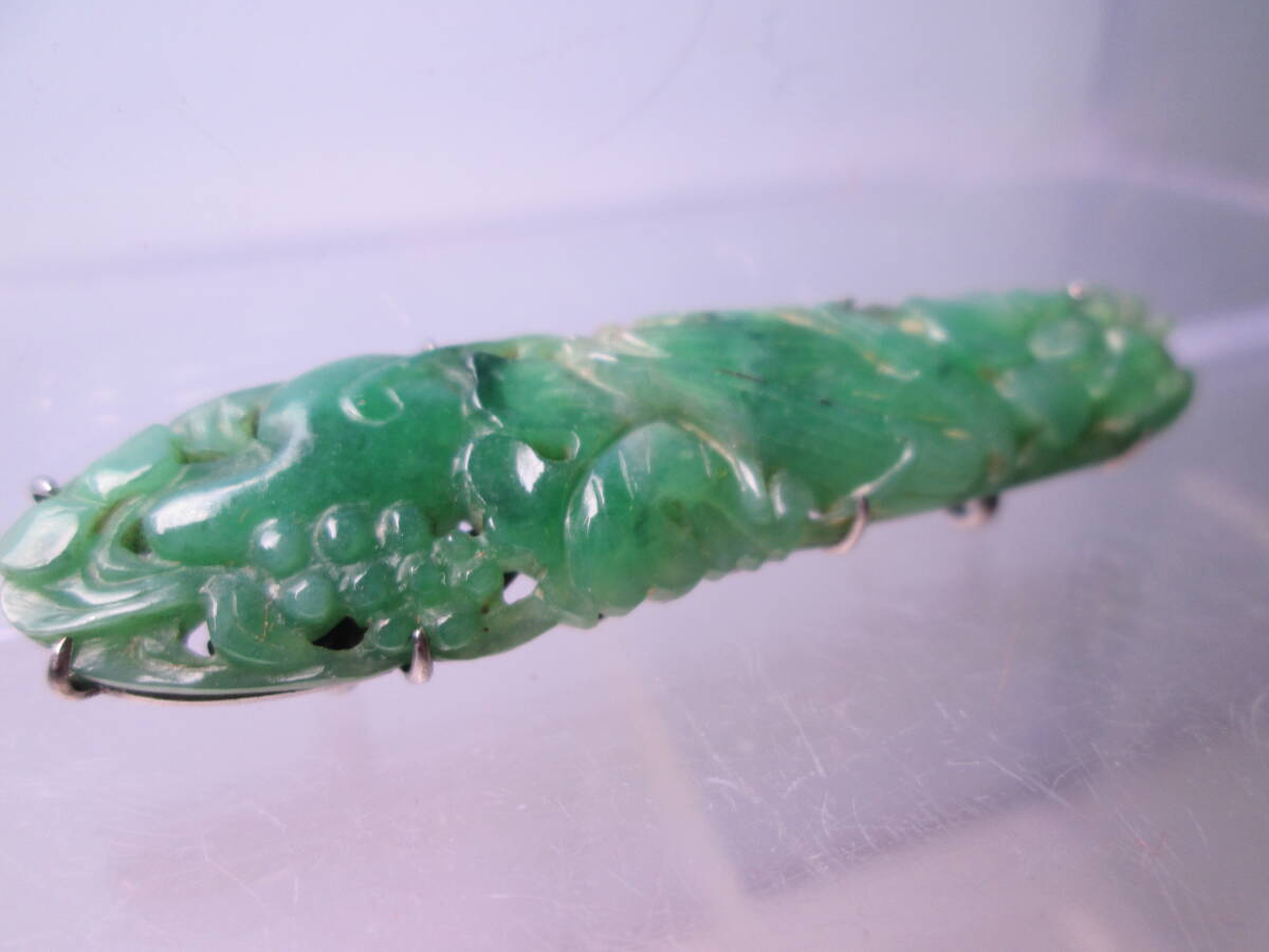 【江月】アンティーク・本翡翠 花彫刻の帯留め 6,4g