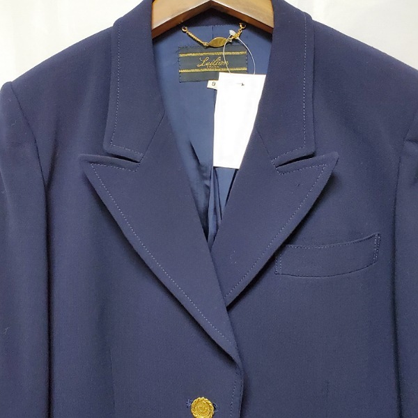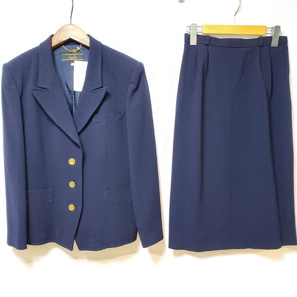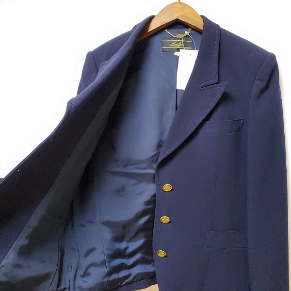 コンディション備考 | ジャケット左袖口に薄汚れ、前身頃左襟付近に糸出がございます。スカート前身頃に薄汚れがございます。多少の使用感がありますが、全体的には良好な状態になります。 |