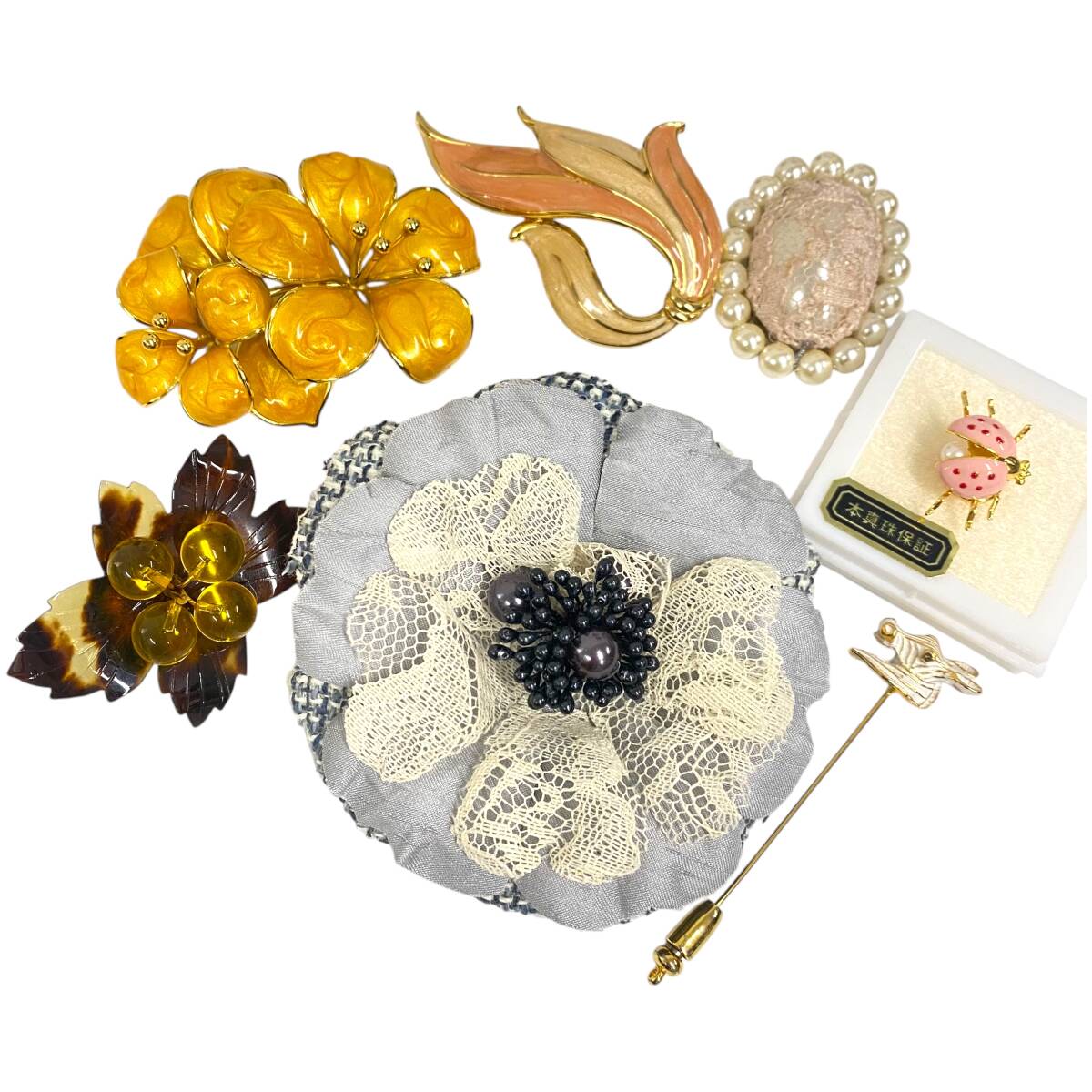 ブローチ 7点まとめ 花 パール レース べっ甲 パール シマウマ てんとう虫 レトロ