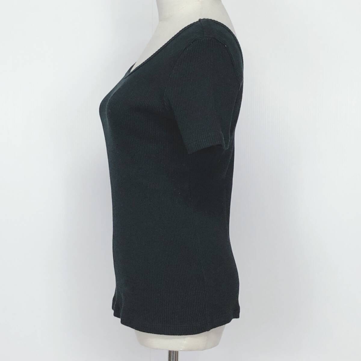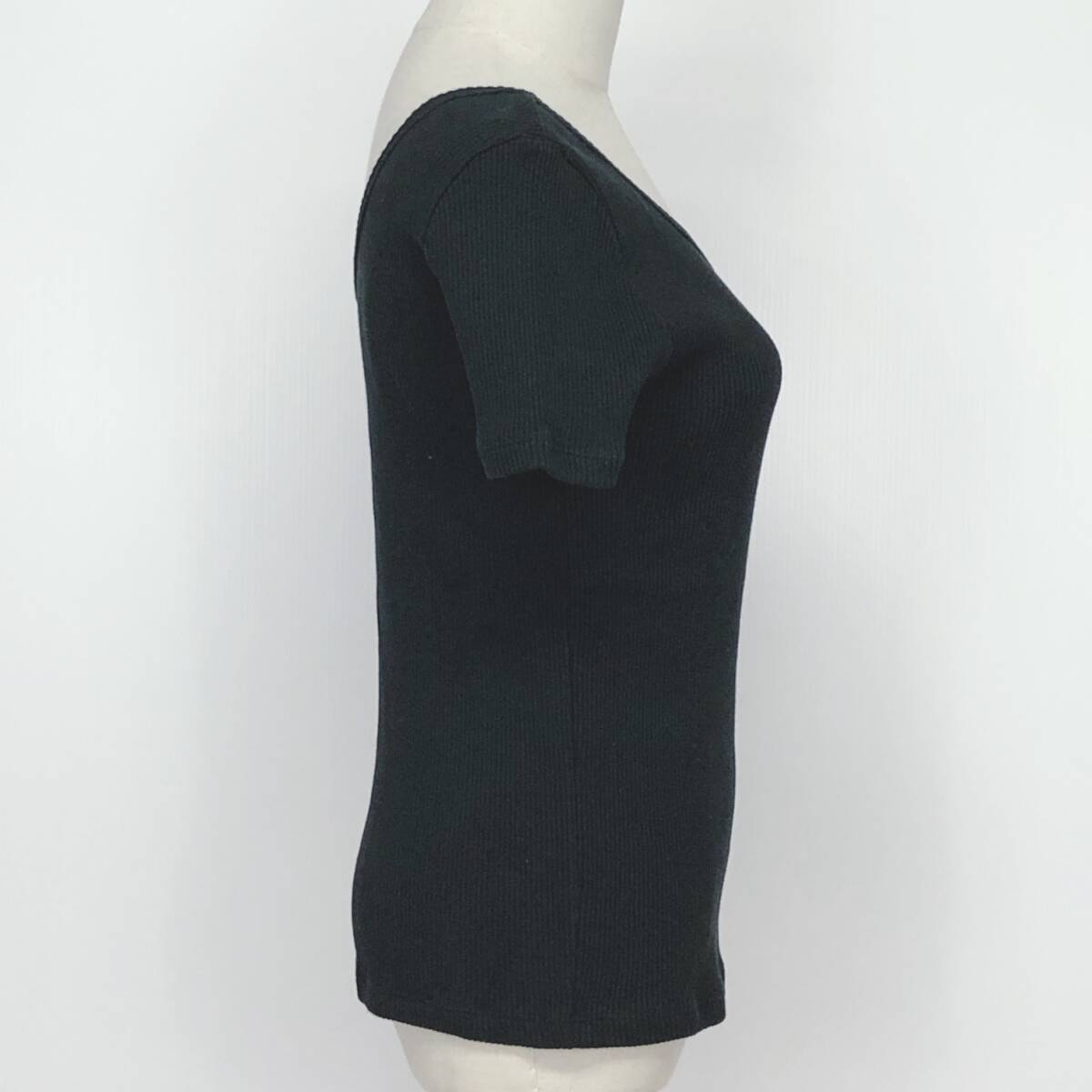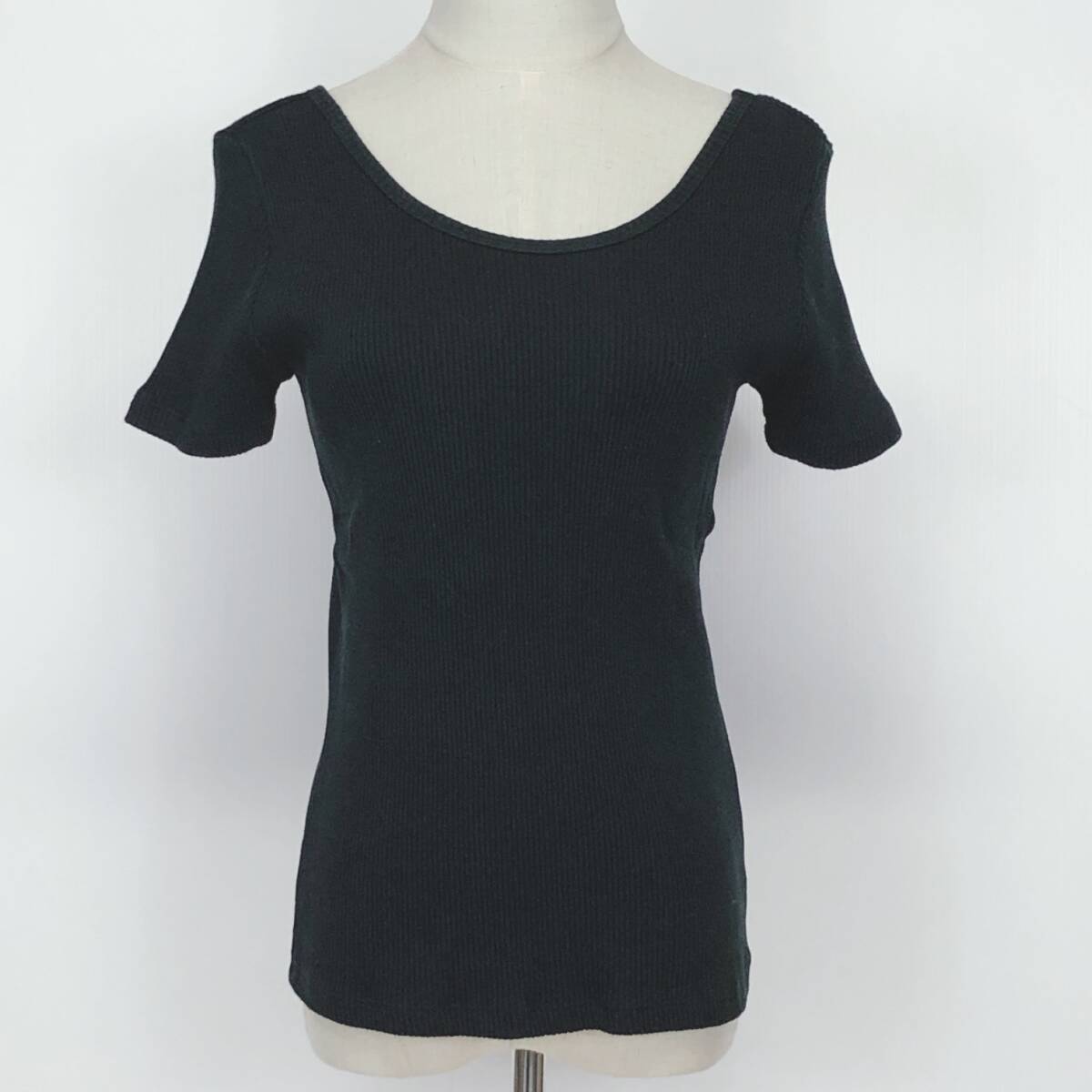 YX1206 美品 Ray BEAMS レディース トップス 半袖 厚手 伸縮性 丸首 ブラック 黒 綿100% シンプル シック あたたか おしゃれ 春秋