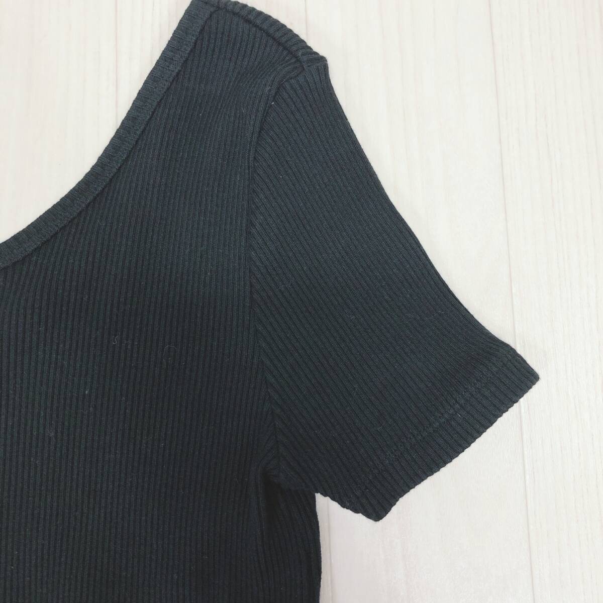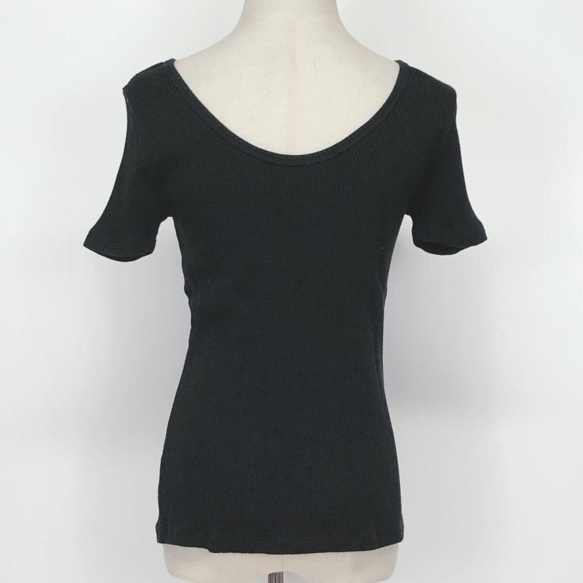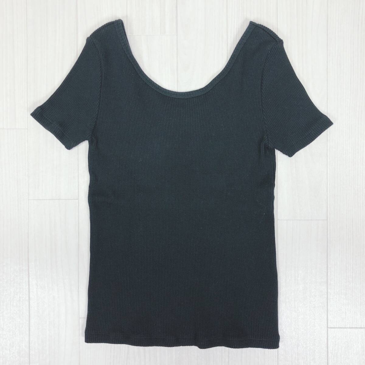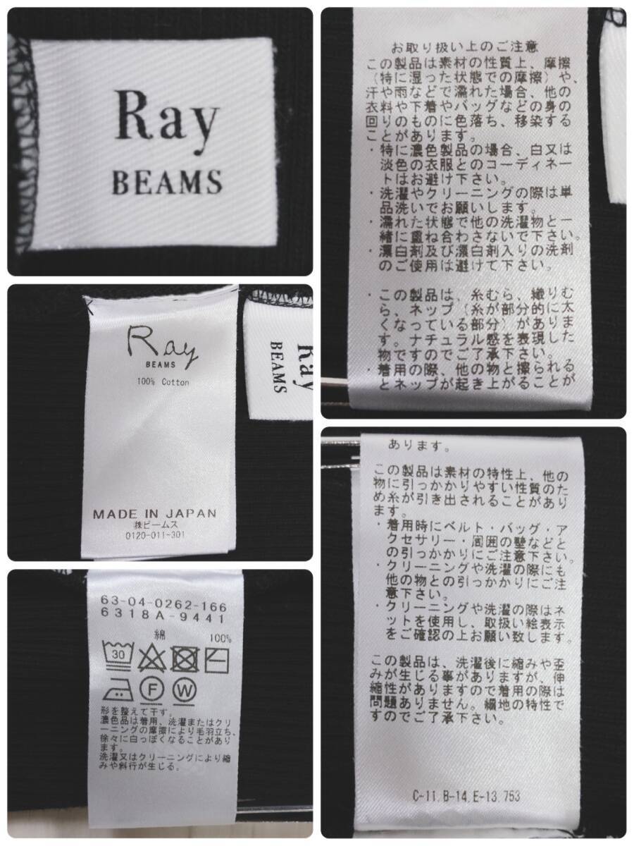 YX1206 美品 Ray BEAMS レディース トップス 半袖 厚手 伸縮性 丸首 ブラック 黒 綿100% シンプル シック あたたか おしゃれ 春秋
