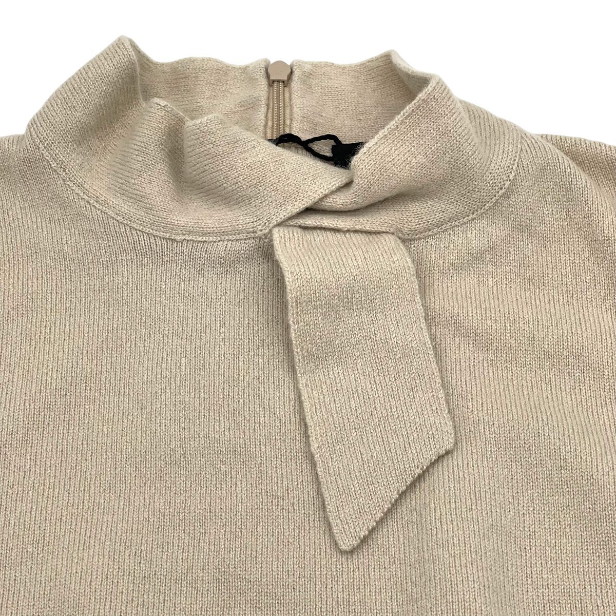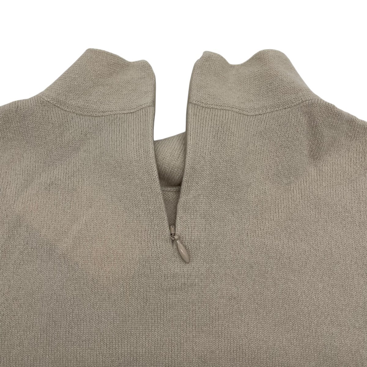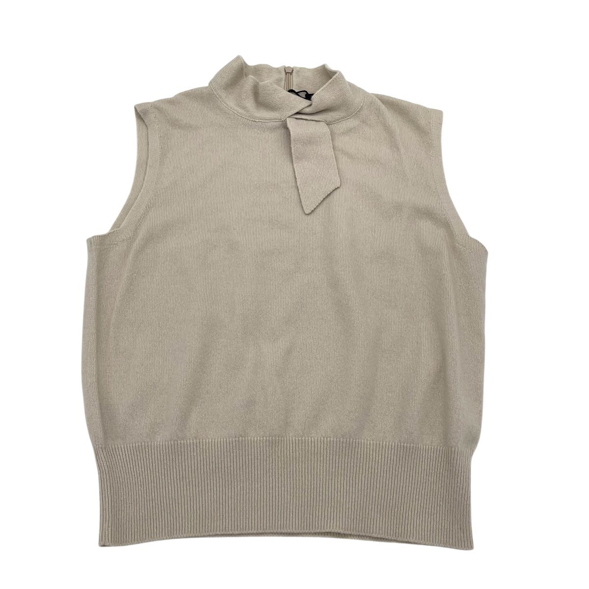 ション 控えめな輝きが上品なシルクルーレックスニットトップ。ネック部分の切り込みにボウタイを通したノットディテールが知的で洗練された印象。 素材:シルクルーレックス モックネック 首元にノットディテール バックジップクロージャー ノースリーブ 画像にあるものが全てとなりますので、状態等含めてご確認をお願いします。