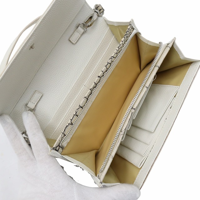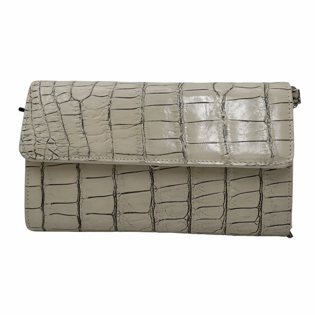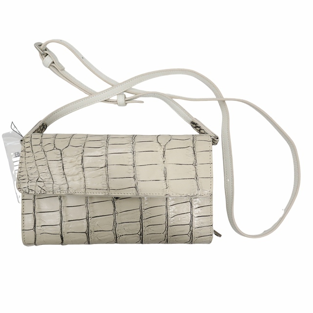 la Deesse CRESCEND クレッシェンド EB-321749 目地染め クロコダイルレザー フラップ ショルダーバッグ ホワイト