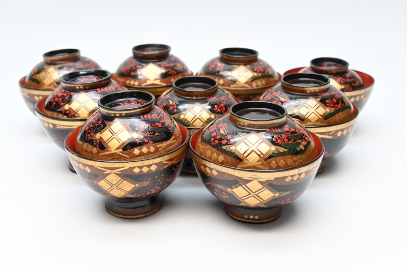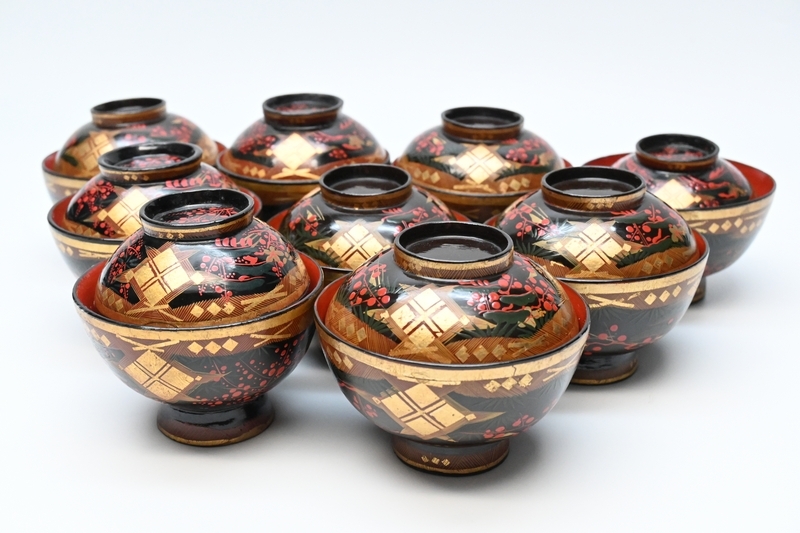 商品説明 | ■ 会津絵 蒔絵椀 [松竹梅] 小吸物椀 9客 ■ ■ 天然木 蒔絵 漆器 時代 木箱入り■ サイズ : 径約9.3cm × h約9.5cm 木箱サイズ : 約13.5cm × 約13.5cm × h約29cm お目に留めて頂いた方へお譲り致します。 本日のお買得品のお仲間に是非いかがでしょうか。 ※ 画像以外の付属品はありません。 ■蔵出し品 中古品相応 経年相応 入手状態でお譲り致します。 木箱には筆書きで大正9年と記載がありました。木箱は5客サイズで、他4客 は当時追加で入手されたお品物かと想像します。よく見ると、デザインも 多少異なっています。お品物はおひとつおひとつ正確なサイズではありません。歪みや蓋も載せているだけのお品もあります。非常に珍しいお品物 ですが、保管状態が良かったものと見え、大きな傷みは見られず、綺麗な 印象です。 新品ではありませんので経年・保管状況による劣化キズ・ 擦れ・塗剥、歪み・汚れ等ございます。ご承知おき願います。 画像からご判断頂ける方、しばらくの間眠っていた時代を経たお品物とご納得 頂ける方のみ検討願います。尚、近年物の参考サイトはこちらから、 お薦めのお品物です。ご入用の方へ!お見逃しなく! ■ご案内 お品物は、綺麗でありましても経年中古品現状渡しでございます。新品ではありません。 ノークレーム・ノーリターンとさせていただきます 。 ※モニターで見える色やイメージが実際のものと違う場合があります。 コメントはあくまでも主観です。見落としなどがあるかもしれませんのでご参考程度とお考え願います。 尚、見解には個人差がございますので神経質な方はご入札を御控え願います。 検索ワードとして、タイトルには出品商品と関連のない単語も含まれる場合があります。 又、落札後のキャンセルや返品はお受付いたしません。 ※ 採寸誤差、誤認、誤記等につきましてはご容赦願います。 紙箱 共箱等納品の場合は基本的に古さがございます。劣化、書き込み等がある場合もございます。 完璧ではありません。 ■お取引について P10395 7576■ 2日以上ご連絡を頂けない場合はキャンセル致します。 |