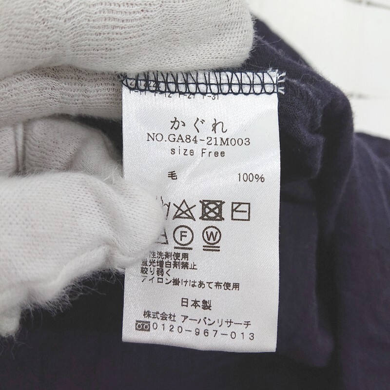 ◇ かぐれ I UKI KAHA NGURENGURE URBAN RESEARCH ウール シンプル 長袖 カットソー サイズF ネイビー レディース P