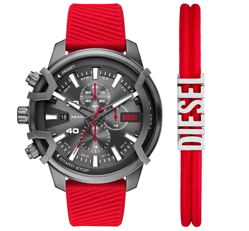 最新 Diesel Men's Griffed Quartz Chronograph Red Silicone 48mm ダイヤル:ブラック、ムーブメント:クォーツクロノグラフ ケース:ラウンド型、ガンメタル調ステンレススチール 48mm ストラップ:シングルプロングストラップバックルクロージャー付きレッドシリコン。調節可能な長さ:195 +/- 5mm 50メートルまでの耐水性 最新をお手元に! 新品(商品タグ) Diesel 正規店で購入 |
