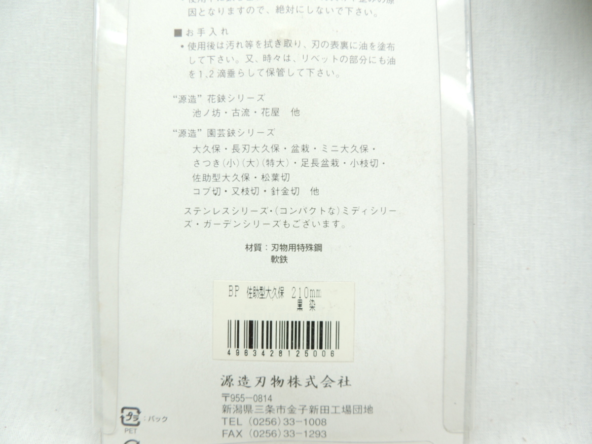 | 商品説明 | ・源造 大久保鋏 (佐助型) 210mmと黒牛皮植木鋏ケースのセット ・刃先カバー付き:保管時の安全と切れ味鋭い刃部の保護のため、使用後は刃先カバーをお使いください。 ・全長:215mm ・表面処理:黒染め ・刃部:刃物用特殊鋼 柄部:軟鉄 ・源造刃物のこだわり優秀な切れ味を実現するため、刃部に昔ながらの製法(鋼と鉄を張り合わせた素材を使用し、鍛造により製造)と高品質な特殊鋼の採用により高い硬度と靱性を得ております。さらに職人が一丁一丁を手仕上で最終刃付け及び刃合わせ調整を丁寧に行っております。だから「源造刃物」の鋏は、その切れ味により切断面の細胞破壊が少なく、植物にやさしい鋏に仕上がっているのです。 管理番号 「1A14-05206」「1F23-へ4」2-A-3 JJAN4963428125006 送料 ・近畿以北の本州 600円 ・中国・四国 800円 ・北海道・九州 1000円 ・沖縄 2500円・離島 1600円 【注意事項】 ・同梱はできません。 ・代引き・着払いの取扱いはありません。 ・3日以内に発送先等のご入力可能な方のみご落札お願い致します。 ・配送のみです、お引き取りはできません。 ・配送便の指定はできません。 ・支払方法 PayPay残高払い、PayPayあと払い、クレジットカード決済、コンビニ払い ・値引き等には応じておりません。 |