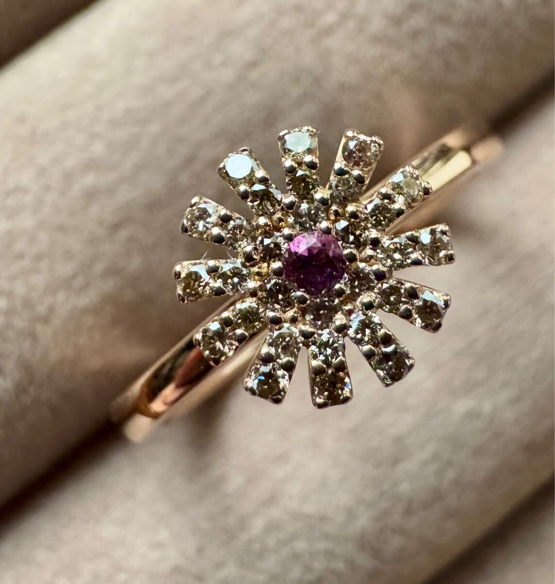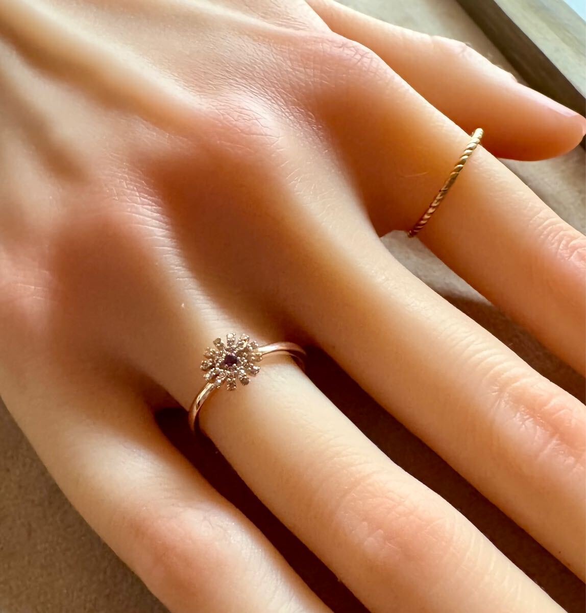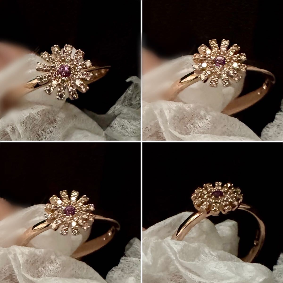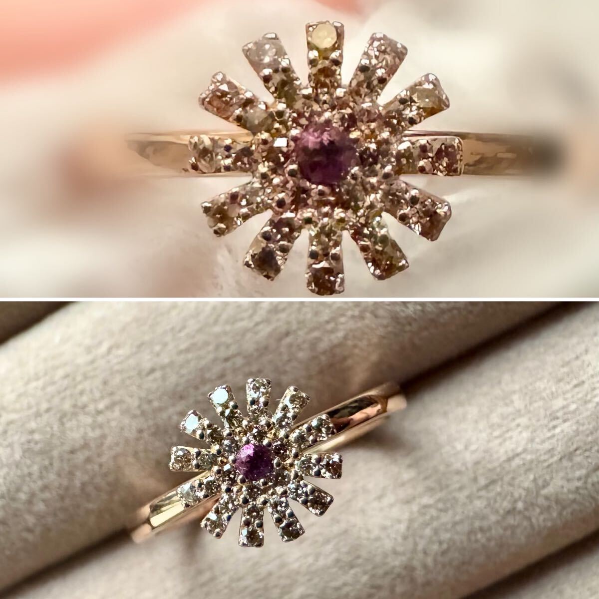 センターにはアメジスト・花びらはブラウンダイヤモンドで彩られています。