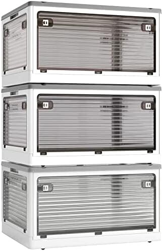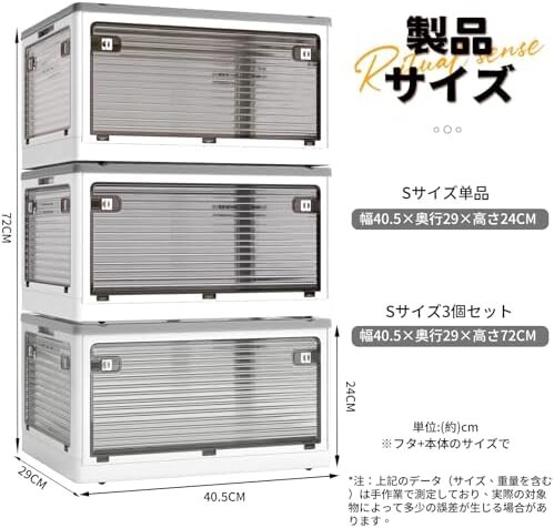 X XUNTAO【収納ボックス 折りたたみ】蓋付き 積み重ね 全方向から取り出せる 3個セット 収納ケース 衣類 布団 小物 収納 折り畳み コンテナ ボックス 大型 プラスチック キャスター付き おしゃれ 組立簡単 多機能 防塵 防カビ 防湿 無臭 透明 厚み 強い耐荷重 大容量 家庭用 車用 複数のサイズ 各種カラー(S3個セット,40.5cm*29cm*24cm,28.2L)