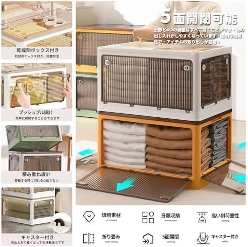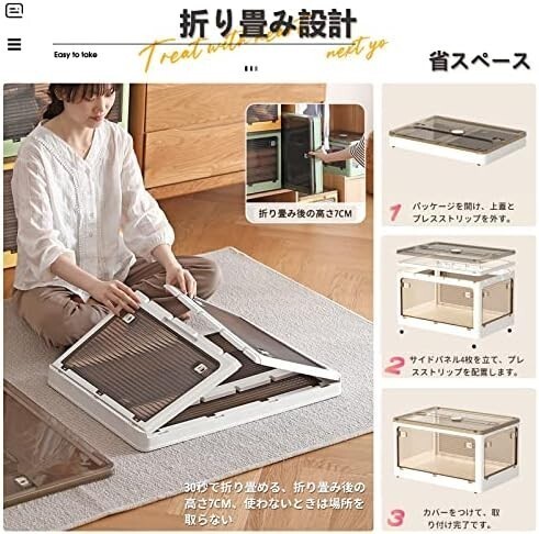 • 【折り畳み?上に蓋/側面扉付き】収納箱界の大革新!使わない時に折りたたんで収納できます。