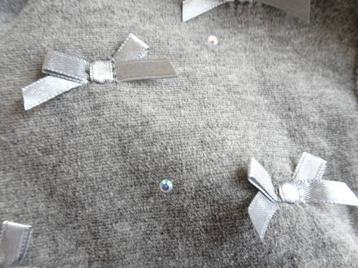 ベロア調の生地で、リボンやラインストーン、フリル飾りが可愛らしいお品です。