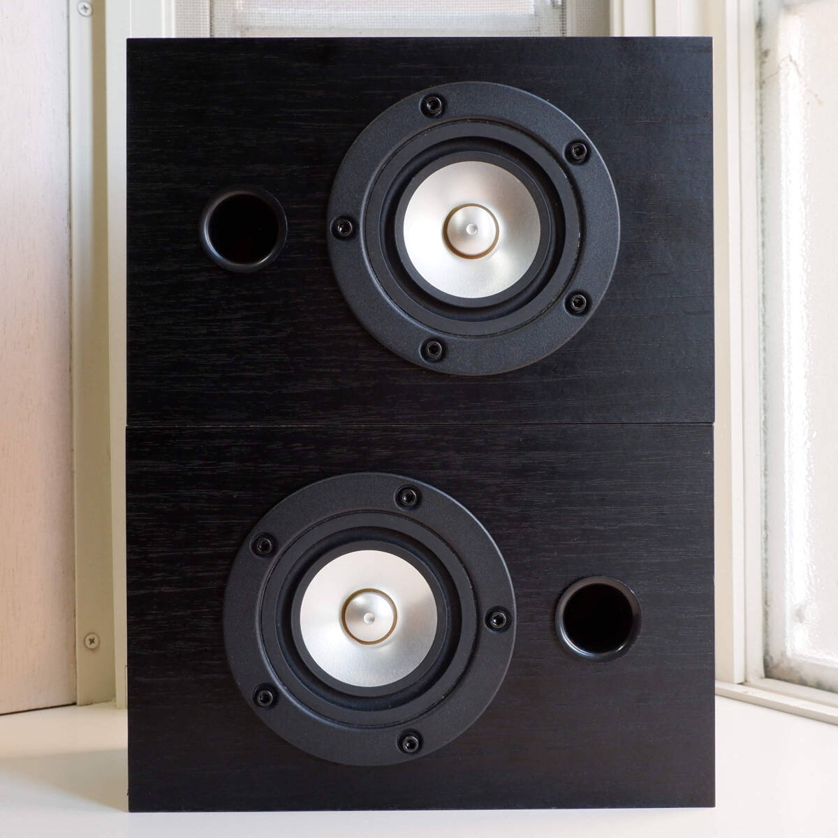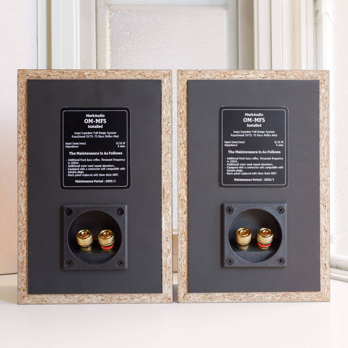 MarkAudioのドライバーユニット「OM-MF5」を、KAYASoundのエンクロージャーに搭載したブックシェルフ型フルレンジスピーカーです。